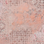 Tło tapety w morelowym kolorze w marmurkowym wydaniu, wzór- ściana z tynkiem spod którego widoczne są pozostałości po kolorowej terakocie, malowidłach naściennych w stylu śródziemnomorskim..