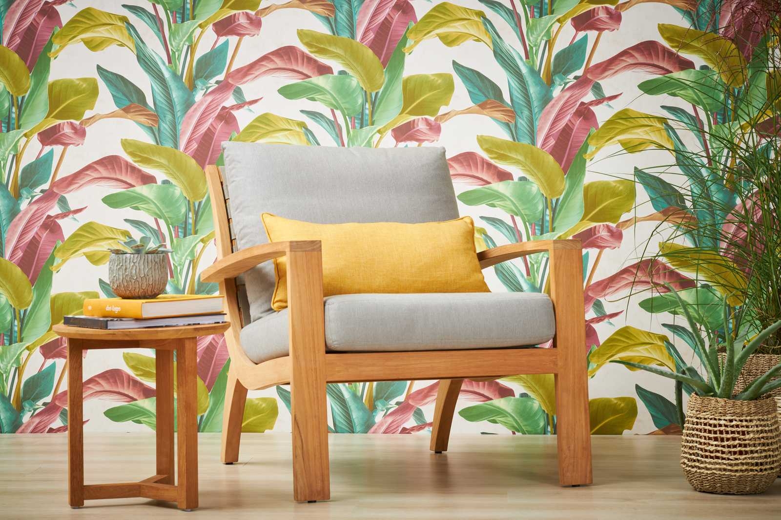 Tapeta ścienna w duże i wyraźne liście bananowca, palmy będą piękną ozdobą pomieszczeń tj. salon, duży pokój, hol, a dzięki bardzo mocnej winylowej powłoce doskonale spełnią się w pomieszczeniach hotelarskich, biurowych wszędzie tam, gdzie będziemy chcieli wyeksponować główną ścianę. Będzie doskonałym uzupełnieniem dla tapet z kolekcji, np. 37865 (szukaj w produktach powiązanych), oraz wszelkiego rodzaju dodatków i dekoracji. Jako samodzielna aranżacja, świetnie ozdobi i "ubierze" ściany w każdym pomieszczeniu, tworząc przytulne wnętrza, które staną się bazą dla różnego rodzaju rozwiązań dekoratorskich i elementów kompozycji, tworzących wymarzony wystrój.