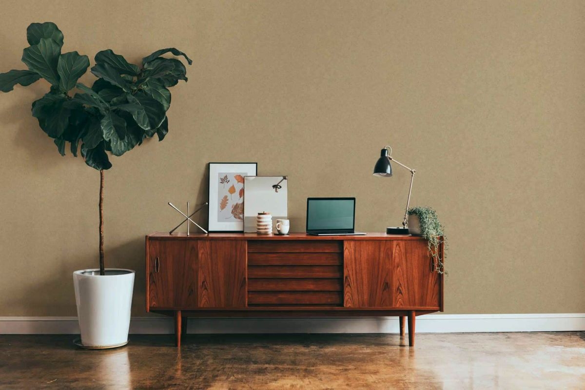 Tapeta występuje w odcieniu szampańskiego złota o satynowym połysku