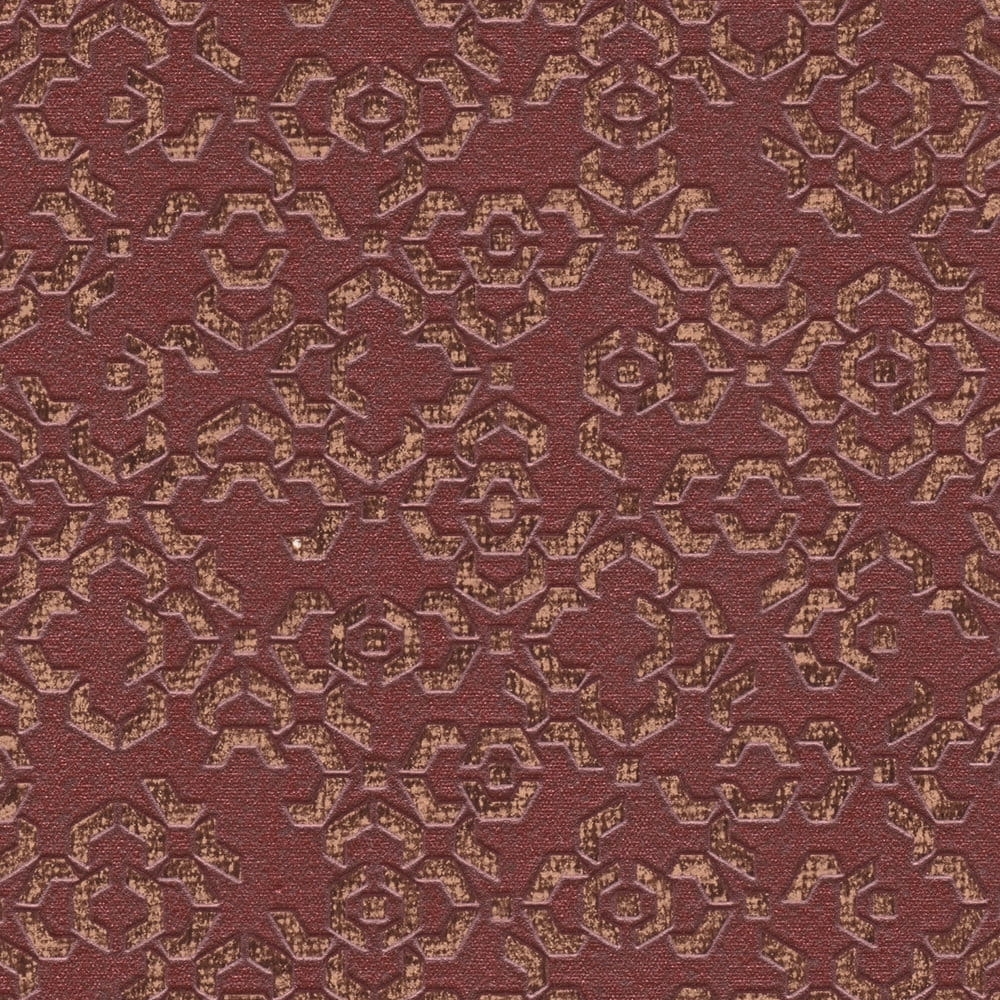 Wzór marokańskiej struktury został doskonale odzwierciedlony na winylowej tapecie ściennej na flizelinie w bordowej kolorystyce