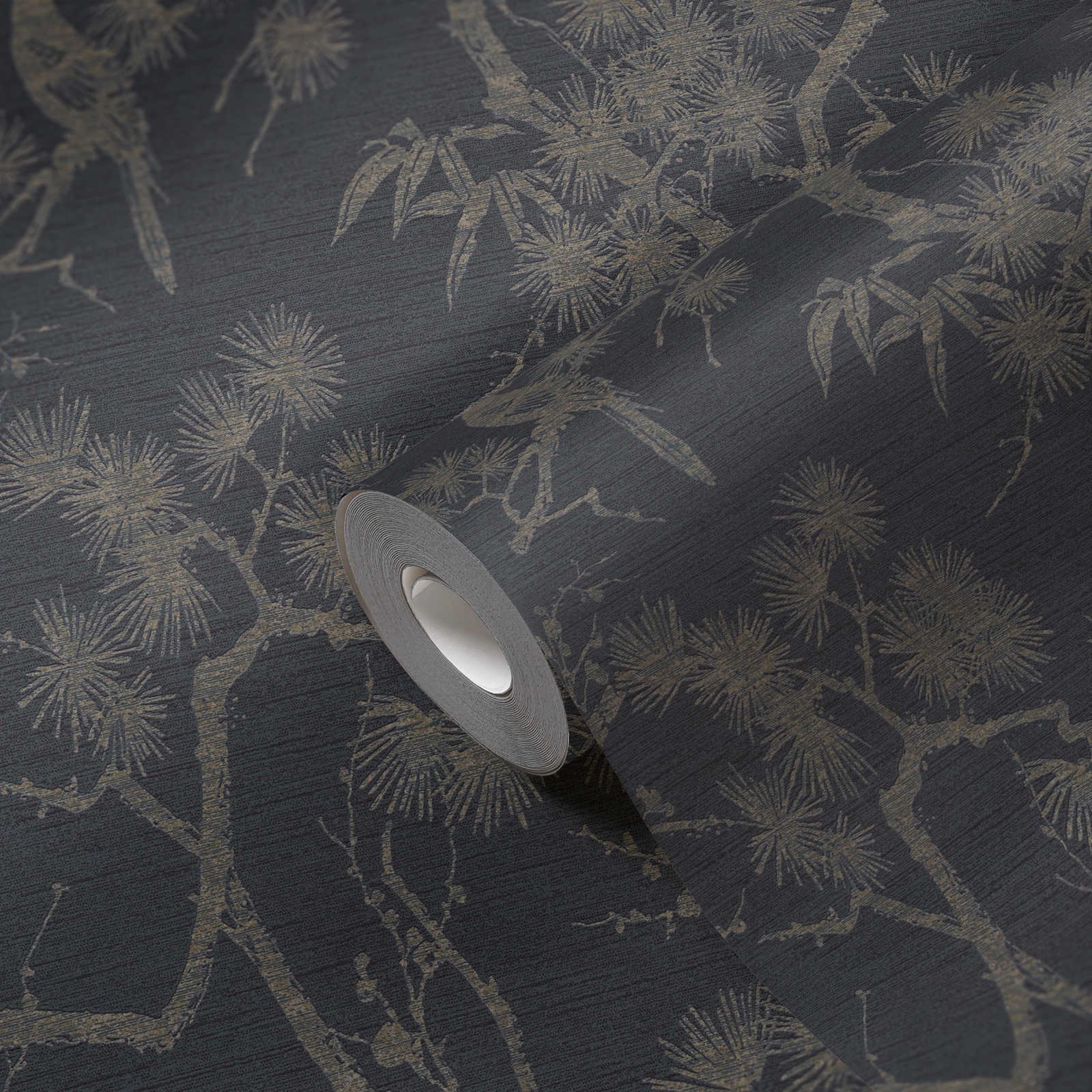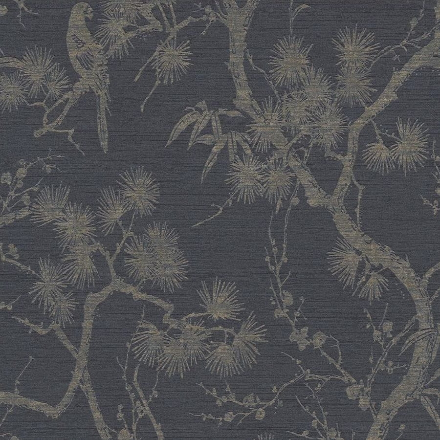 Ptaki siedzące pomiędzy gałązkami Oczaru wirginijskiego to kolejny symbol kultury japońskiej, który znalazł się w najnowszej kolekcji AS Creation. Na matowym i czarno-szarym tle winylowej okładziny ściennej tłoczony jest beżowo-złoty wzór, który połyskuje pod wpływem padającego światła. Tapeta pełna uroku o nieszablonowym wzorze przyniesie orientalny klimat do naszego wnętrza.