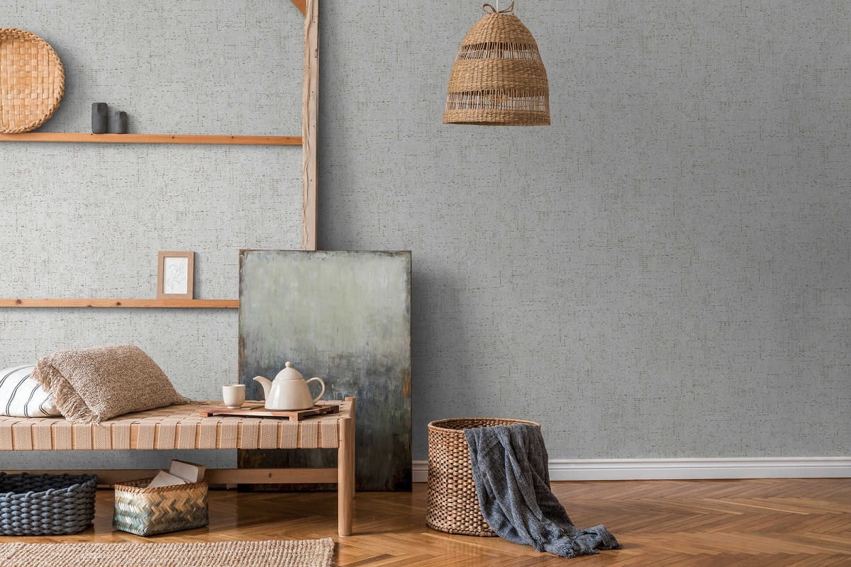 Ten wzór znajdzie uznanie wśród osób, które lubią surowy i naturalny styl oraz stonowaną kolorystykę w aranżacji wnętrz. Wzór na tapecie tworzy wyraźnie przecierany kolor doskonale imitujący ozdobny tynk. Aranżacja doskonale sprawdzi się w nowoczesnych jak i klasycznych wnętrzach.