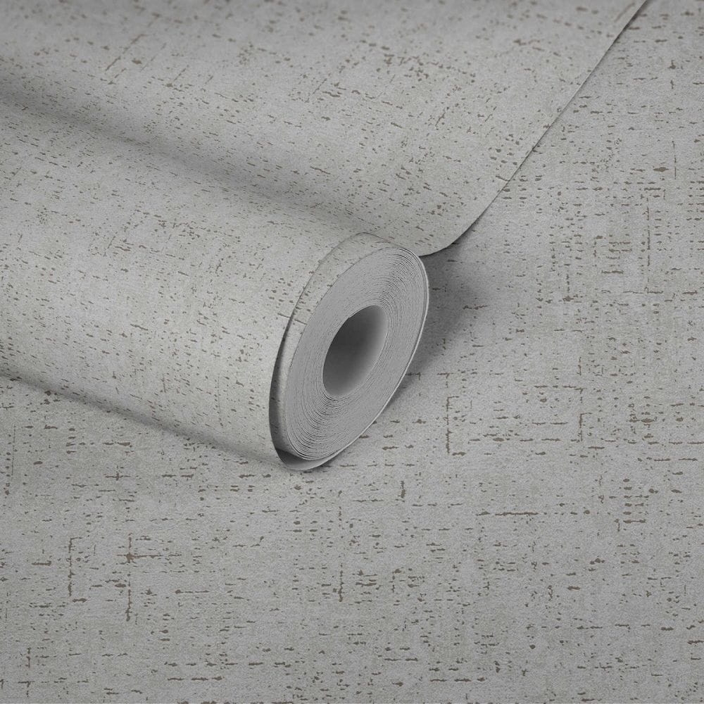 Tapeta ścienna winylowa na flizelinie, przecierana, imitująca ozdobny tynk w szarym kolorze