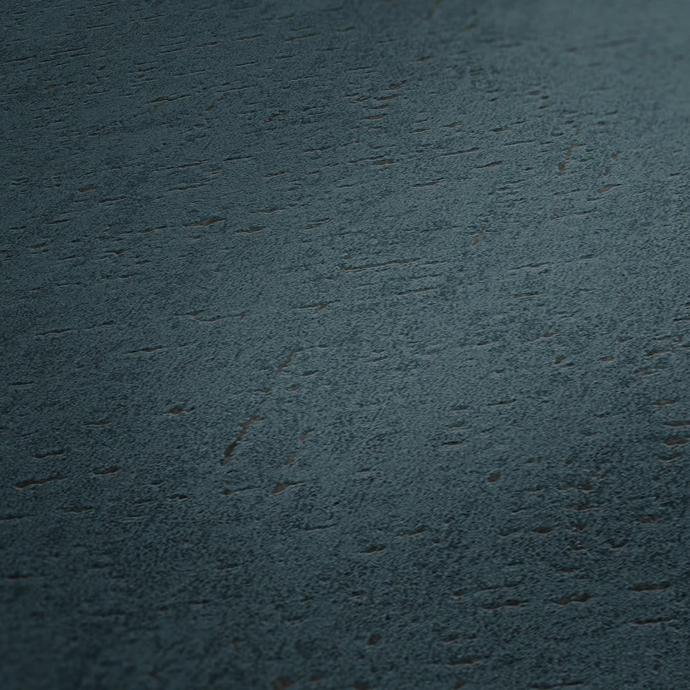 Okładzina ścienna we wzór tynku o niejednolitym ciemnym turkusowym/lazurowym kolorze o powierzchni wzoru jakby przecieranej, matowej, przez który przebija połyskujące tło w czarnym zabarwieniu.
