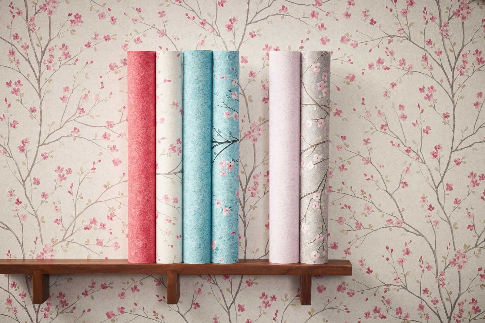 Powierzchnia tapety jest prawie gładka, aksamitna w dotyku, bez tłoczenia.
