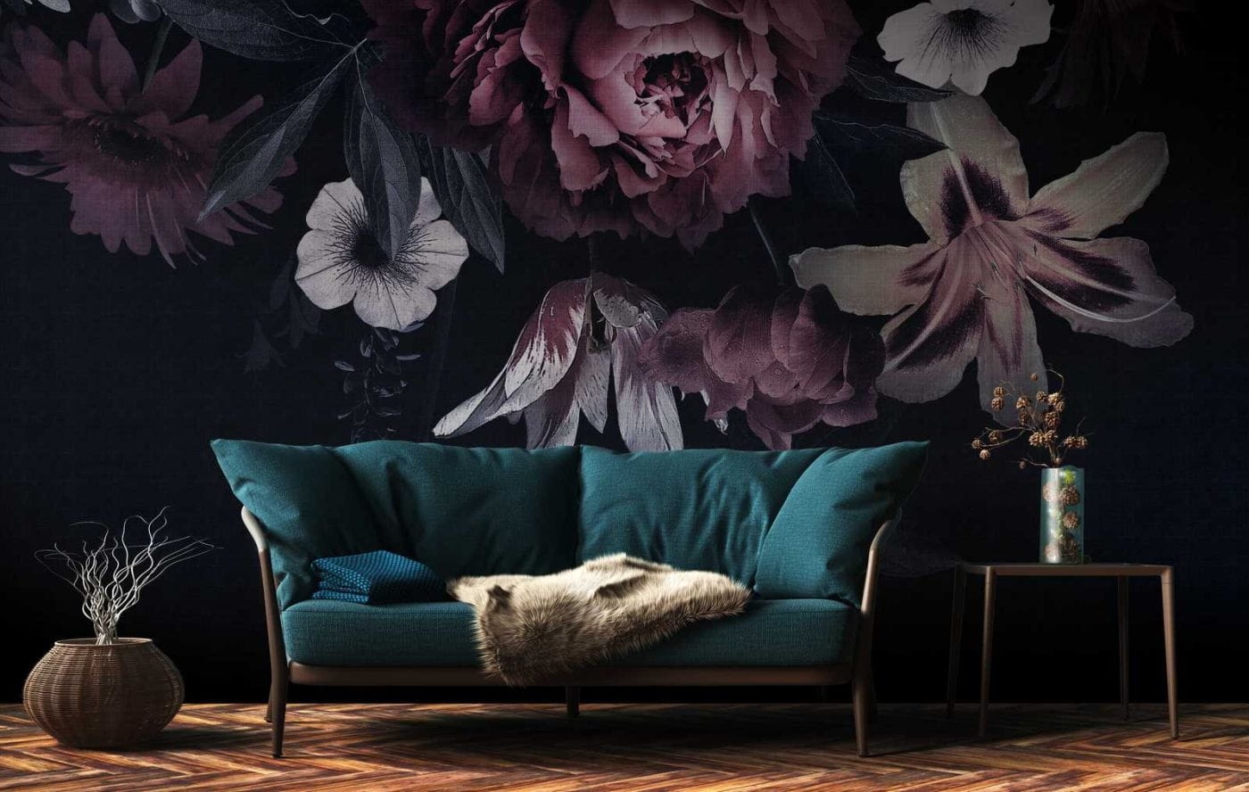 Metropolitan Stories The Wall 38279-1 Tapeta ścienna AS-MURAL, kwiaty na ciemnym tle