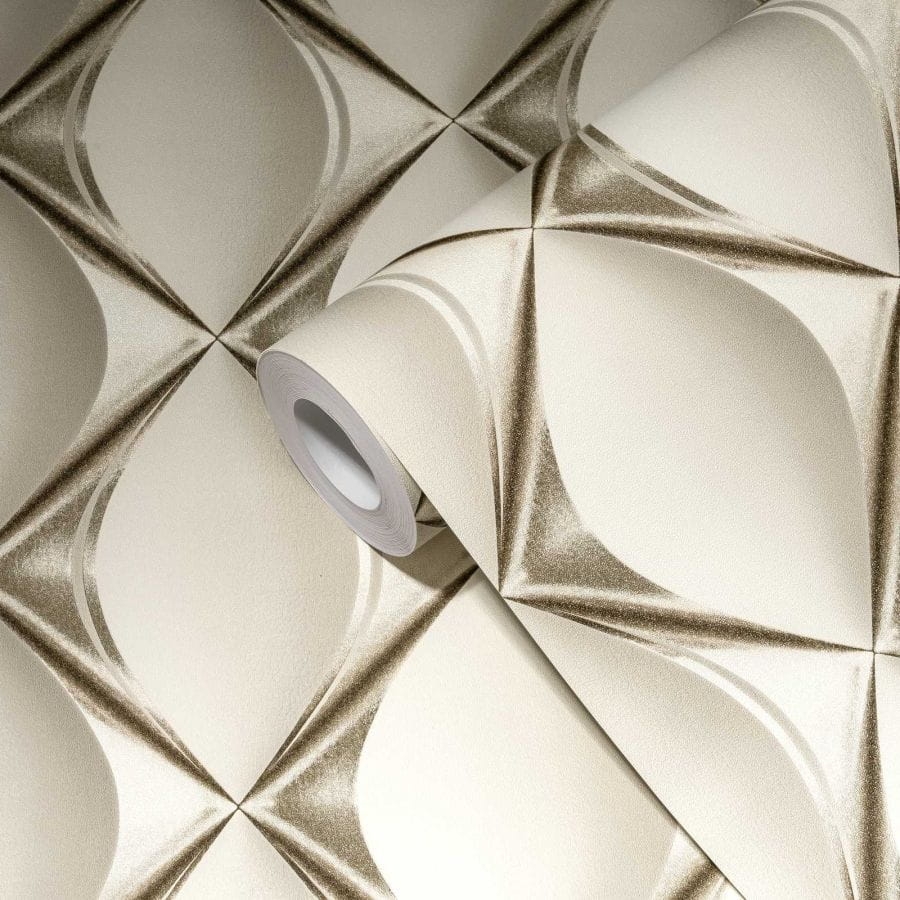 Tapeta ścienna na flizelinie, romby 3D metalik, wzór geometryczny z białym złotem