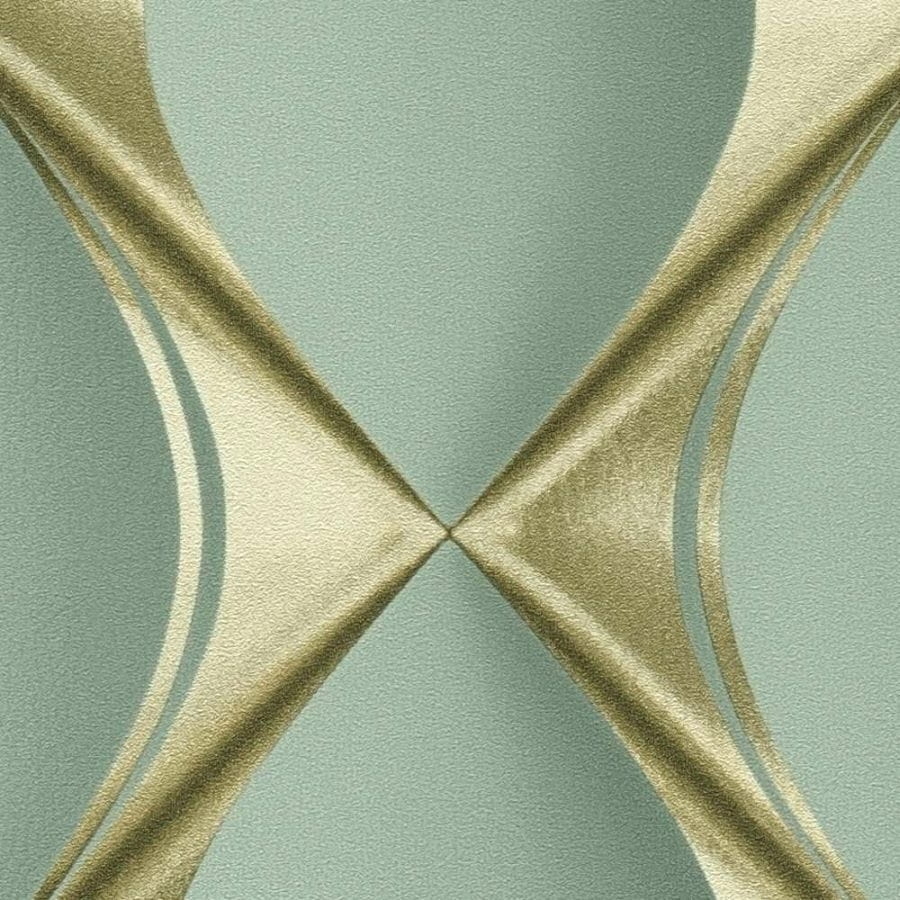 - Kolorystyka: tapeta jest w kolorze jasnozielonym / miętowym z błyszczącym złotym dekorem