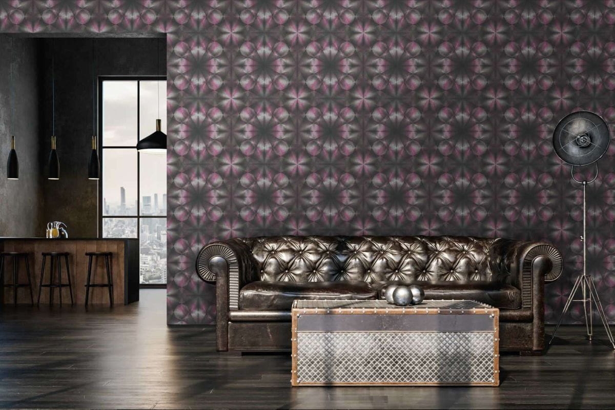 - Kolorystyka: tapeta jest w kolorze różowo-czarnym. Kolory się przenikają, są metaliczne, cieniowane