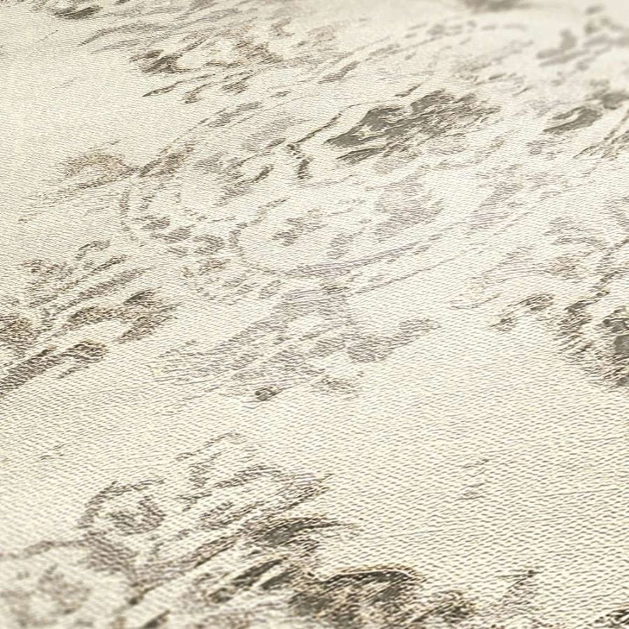 Tapeta ścienna na flizelinie, beżowo-szaro-złoty ornament