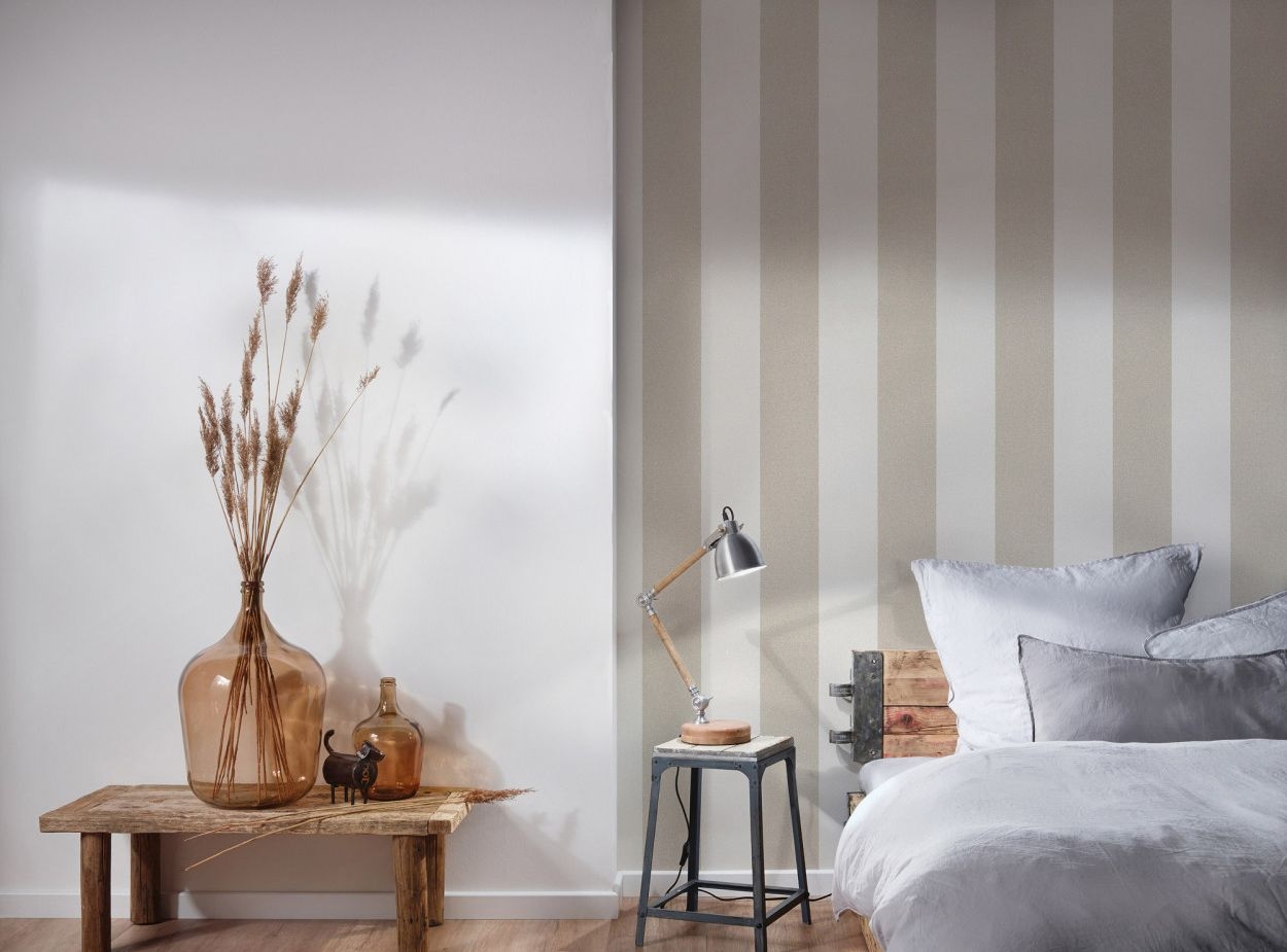 Tapeta w pasy, w odcieniach beżu, bieli
