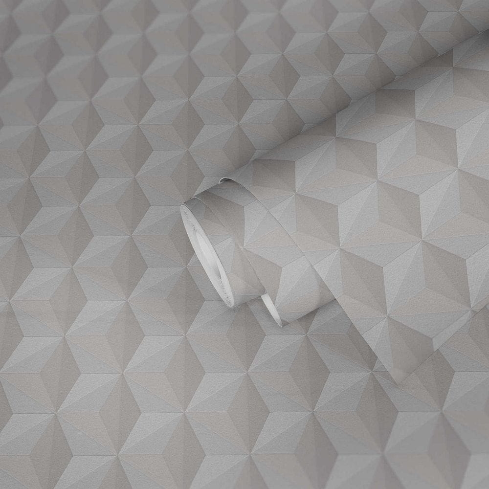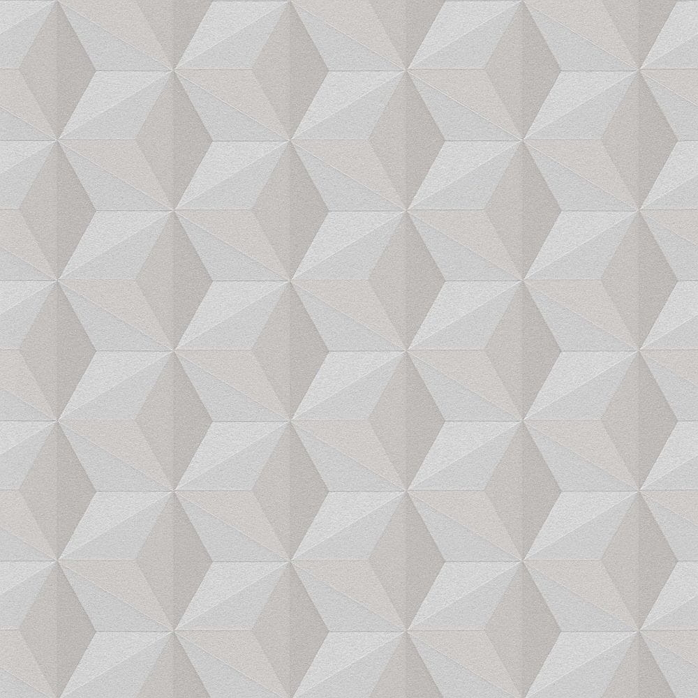 Struktura tapety jest delikatnie tłoczona-nakrapiana, z wyraźnymi konturami wzoru. Tapeta w różnych odcieniach beżu. Umiejętne operowanie kolorem, współgranie światła i cienia doskonale pokazuje efekt trójwymiaru. Wzór geometryczny/ kwadraty staje się przestrzenny i wyraźny, doskonale oddaje wrażenie głębi, a dodatkowe ozdobienie tapety drobinkami brokatu sprawia że wzór staje się bardzo atrakcyjny i elegancki