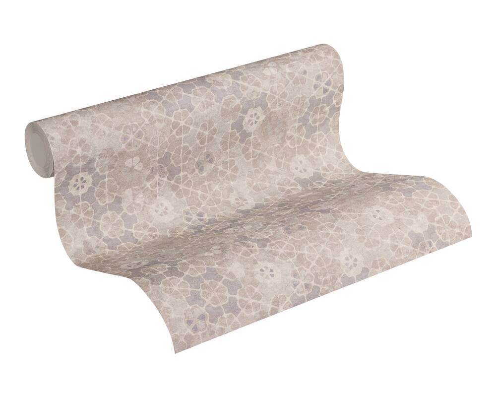Ten wzór znajduje uznanie wśród osób, które cenią sobie oryginalne i ciekawe pomysły i nie boją się odważnych aranżacji. Struktura tapety lekko chropowata, ziarnista w dotyku. Delikatne i niewielkie kwiaty, które zostały umieszczone na tapecie są na tle delikatnego motywu graficznego. Całość wyraźnie przecierana, cieniowana, różne odcienie beżu, bieli, szarości, metalicznego srebra, umiejętnie łączą się ze sobą tworząc niezwykle ciekawą aranżację, która sprawia wrażenie "dotkniętej zębem czasu". Symetryczne rozmieszczenie tych kwiatów powoduje, że kompozycja wydaje się spokojna i stonowana, dzięki czemu milej spędza się czas w takim otoczeniu. Delikatne metaliczne efekty sprawiają, że wzór staje się niezwykle efektowny i z pewnością podkreśli każdy wystrój.