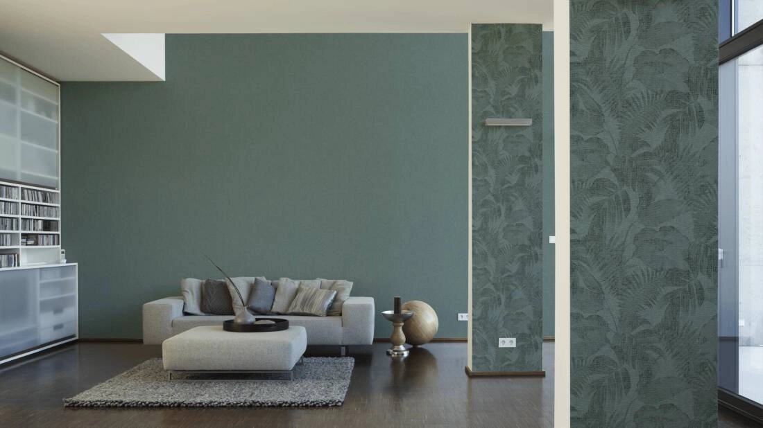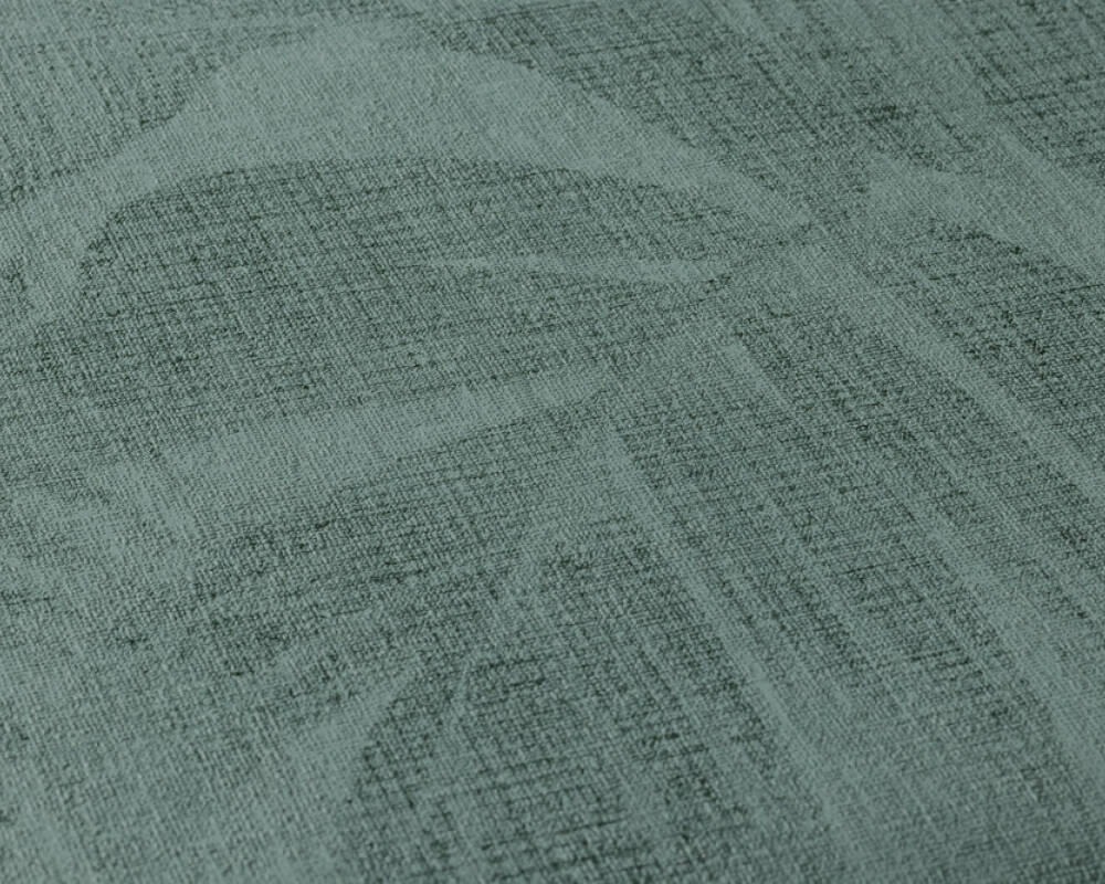 Ten wzór tapety znajdzie uznanie u wszystkich, którzy cenią sobie styl botaniczny z naturą w tle. Faktura tapety lekko chropowata w dotyku, nakrapiana. Kolor niejednolity, przecierany tworzy na tapecie tło imitujące powierzchnię lnianej tkaniny. Całość zaś wypełniają duże liście różnego rodzaju i formy, jednak kompozycja jest bardzo delikatna i stonowana, ponieważ gęstwina liści jest w formie delikatnego nadruku na tapecie. Aranżacja jest wykonana w stonowanej kolorystyce: tło w odcieniu przyjemnej zieleni, na nim ciemnozielone liście. Kompozycja jest spokojna i stonowana, dzięki czemu milej spędza się czas w takim otoczeniu.
