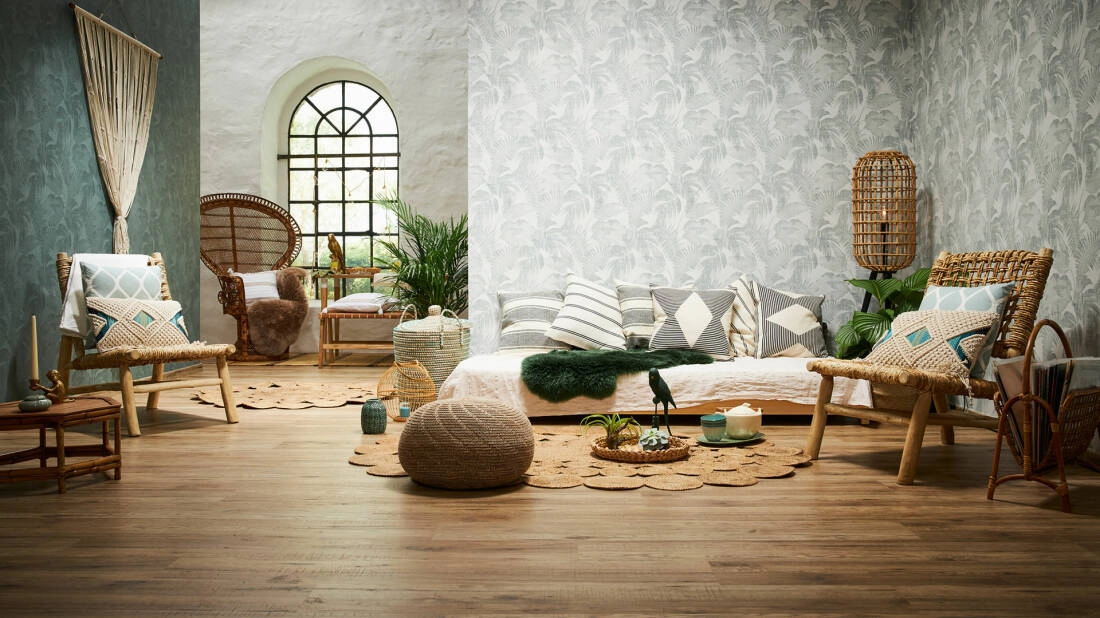 Tapeta ścienna w liście prezentuje się dobrze zarówno w pomieszczeniach, w których spędza się większość wolnego czasu - jak salon i sypialnia, ale również w przedpokoju, czy jadalni. Wzór jest nowoczesny, prosty i na tyle elastyczny, że na pewno sprawdzi się wszędzie, gdzie tylko go potrzebujesz.