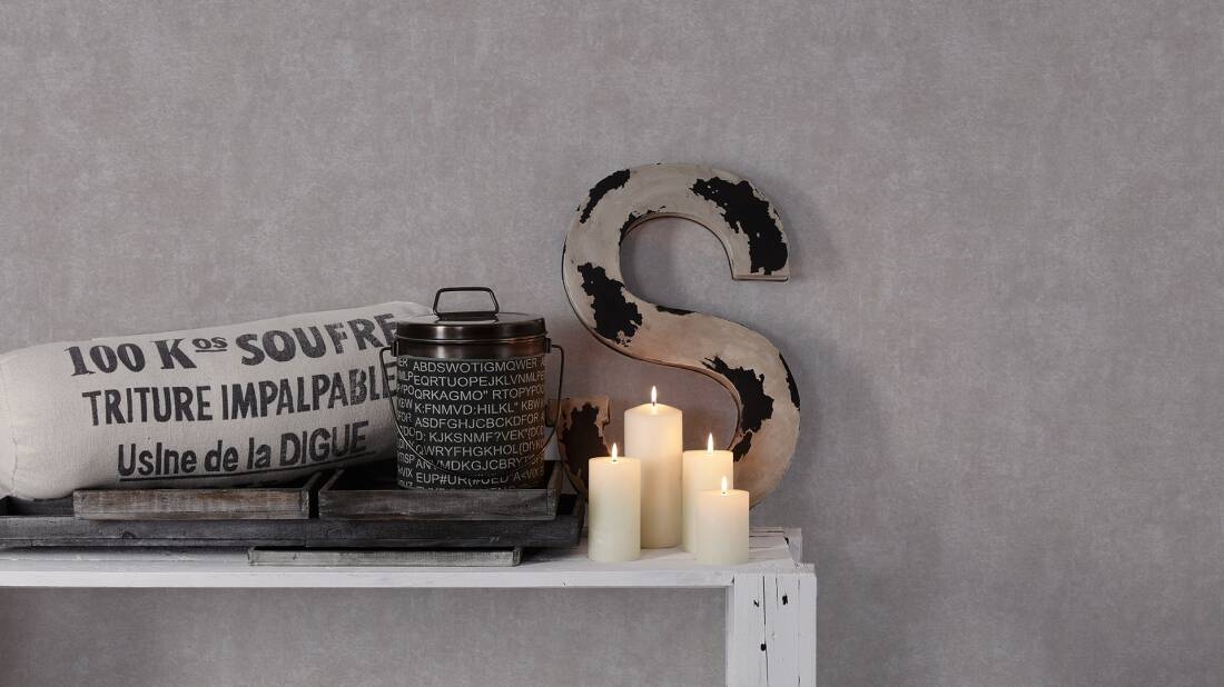 Ten wzór znajdzie uznanie wśród osób, które cenią sobie proste i nowoczesne wykończenia wnętrz w naturalnej i stonowanej kolorystyce. Powierzchnia tapety jest o matowym wykończeniu, delikatnie tłoczona, lekko chropowata w dotyku. Kolor- odcienie jasnej szarości z nutą beżu, oraz faktura tapety jest niejednolita, przecierana, doskonale imituje betonową powierzchnię, lub ozdobny tynk. Wzór ten doskonale się sprawdzi jako wykończenie nowoczesnych i minimalistycznych wnętrz.