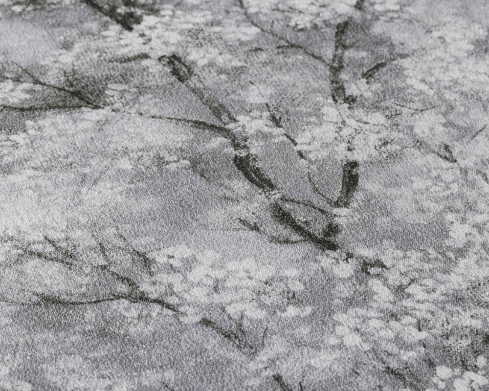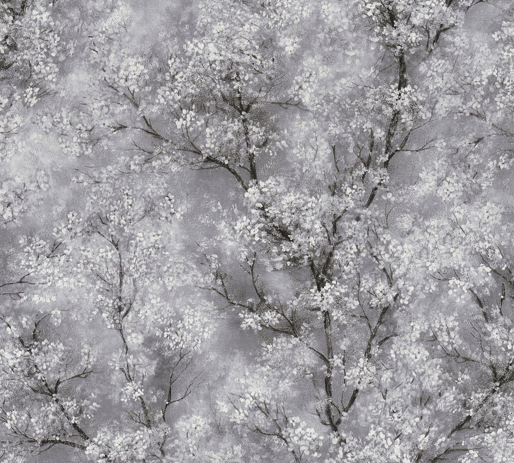 Tapeta w drzewa kwieciste, w odcieniach szarości, bieli