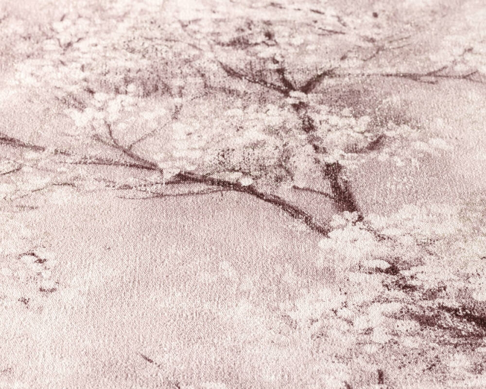 Ten wzór tapety znajdzie uznanie wśród tych, którzy cenią sobie naturalne, ciekawe aranżacje ścienne, z nutą romantyzmu. Struktura tapety jednolita, lekko chropowata, ziarnista w dotyku. Tło tapety w odcieniu jasnego, pastelowego różu, delikatnie przecierane, cieniowane, sprawia, że tapeta doskonale imituje lnianą tkaninę. Na nim gęsto ułożone, jakby malowane, delikatne gałązki pokryte drobnymi kwiatkami. Gdzieniegdzie wzór ozdobiony drobinkami delikatnego brokatu, który nadaje tapecie odrobiny elegancji i szyku. Aranżacja jest pełna urzekającego wdzięku i harmonii. Wzór doskonale sprawdzi się jako uzupełnienie jednolitych tapet z kolekcji, tworząc w pomieszczeniu kompozycję, która sprawi, że nasze wnętrze przepełni się spokojem i milej będzie w nim spędzać czas.