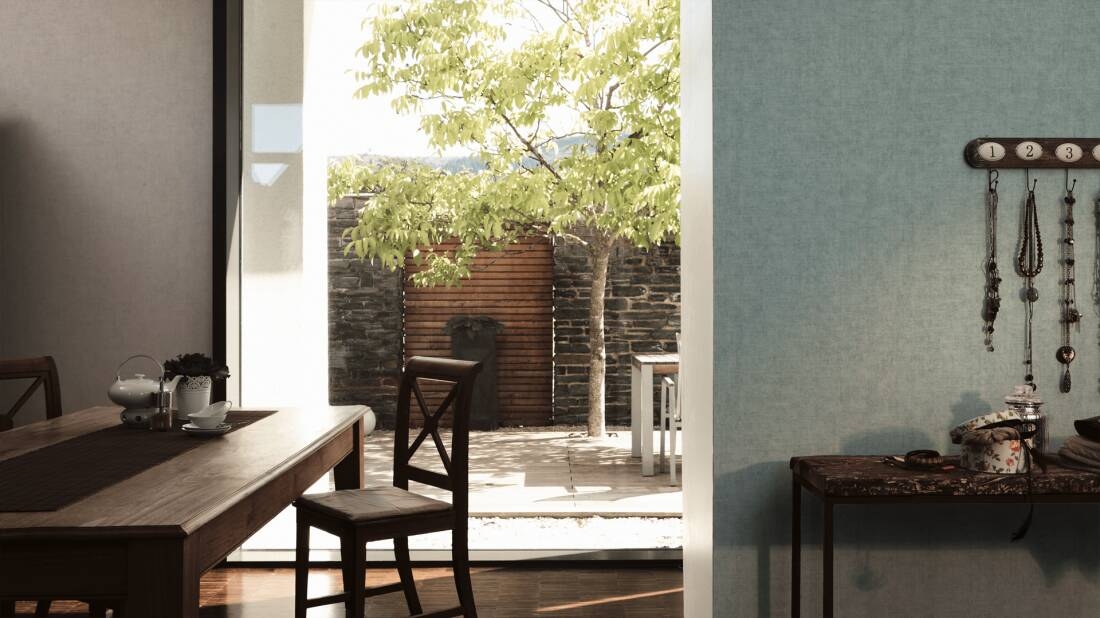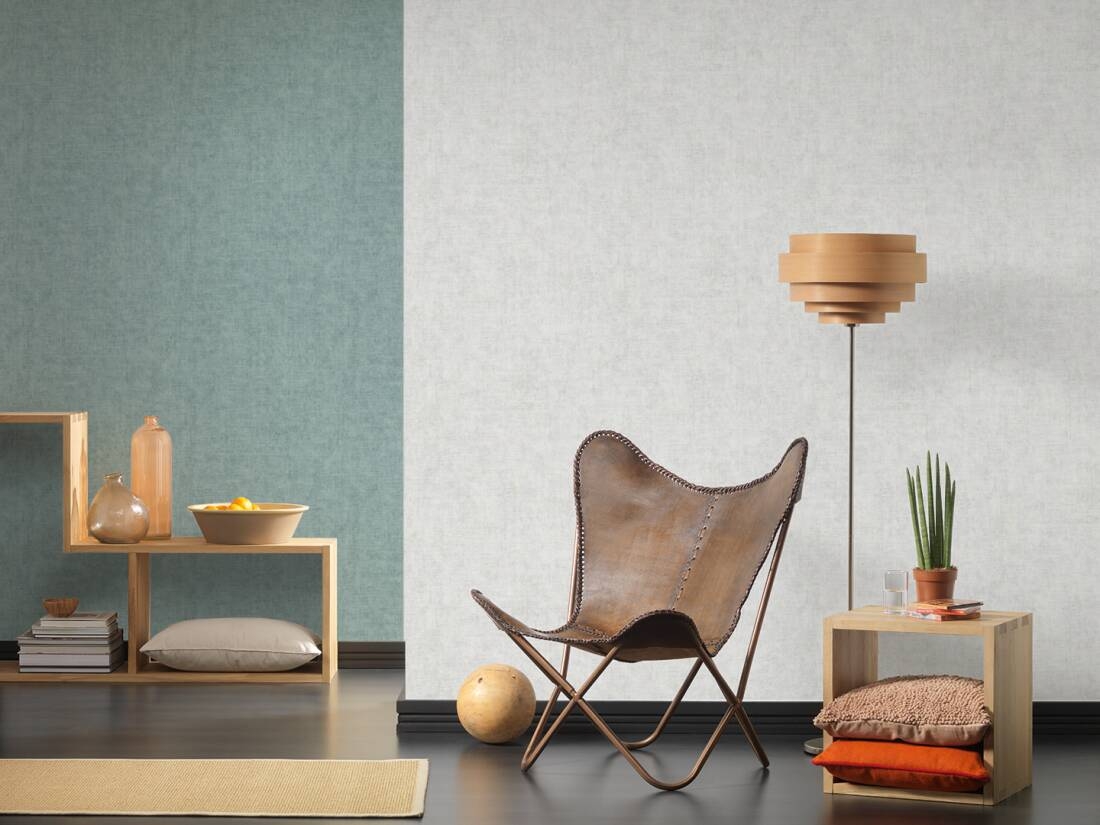 Ten wzór tapety znajdzie uznanie wśród tych, którzy cenią sobie proste, naturalne, bądź minimalistyczne wykończenia wnętrz. Struktura tapety jednolita, lekko chropowata, ziarnista w dotyku. Kolor- to odcień jasnego turkusu, delikatnie przecierany, cieniowany, sprawia, że tapeta doskonale imituje lnianą tkaninę. Wzór doskonale sprawdzi się jako uzupełnienie wzorzystych tapet, bądź jako ozdoba wybranego fragmentu ściany lub całego pomieszczenia, które ozdobimy odpowiednimi meblami i dodatkami.
