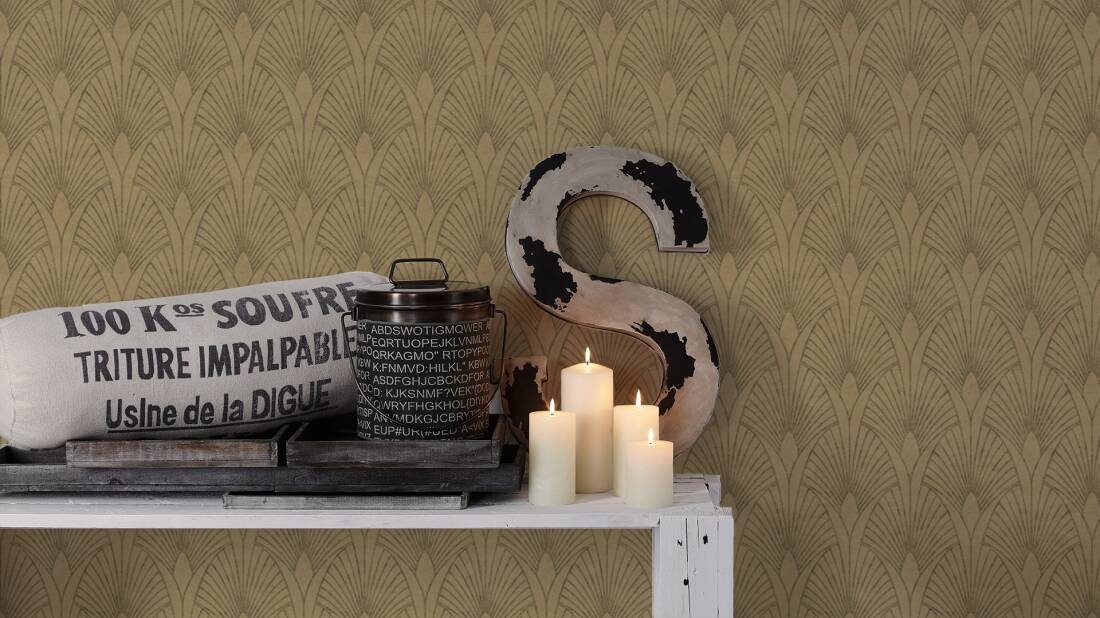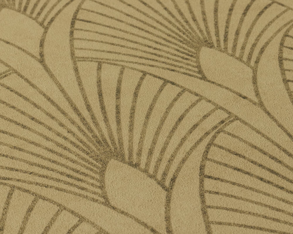 Ten wzór znajdzie uznanie wśród osób, które lubią elegancję i szyk w powiązaniu z ciekawym wzornictwem i kolorystyką. Powierzchnia tapety w odcieniach ciepłego beżu, pokryta jest gęsto ciekawym wzorem, przypominającym rozłożone wachlarze-a dokładniej ich kontury. Wzór naniesiony na tapecie jest w odcieniach brązu, matowy, miejscami delikatnie cieniowany. Faktura tapety jest jednolita, chropowata i delikatnie nakrapiana. Aranżacja ciekawa i przyciągająca wzrok, z pewnością odmieni nasze wnętrza i sprawi, że nabiorą one odrobinę luksusu i elegancji.