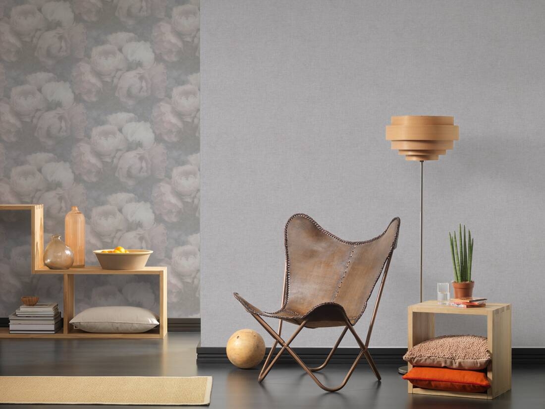 Ten wzór tapety znajdzie uznanie wśród tych, którzy cenią sobie proste, naturalne, bądź minimalistyczne wykończenia wnętrz. Struktura tapety jednolita, lekko chropowata, ziarnista w dotyku. Kolor- to odcień jasnej szarości z delikatnie zaakcentowanymi ciemniejszymi nitkami, przecierany, sprawia, że tapeta doskonale imituje lnianą tkaninę. Wzór doskonale sprawdzi się jako uzupełnienie wzorzystych tapet, bądź jako ozdoba wybranego fragmentu ściany lub całego pomieszczenia, które rozjaśnimy odpowiednimi meblami i dodatkami.