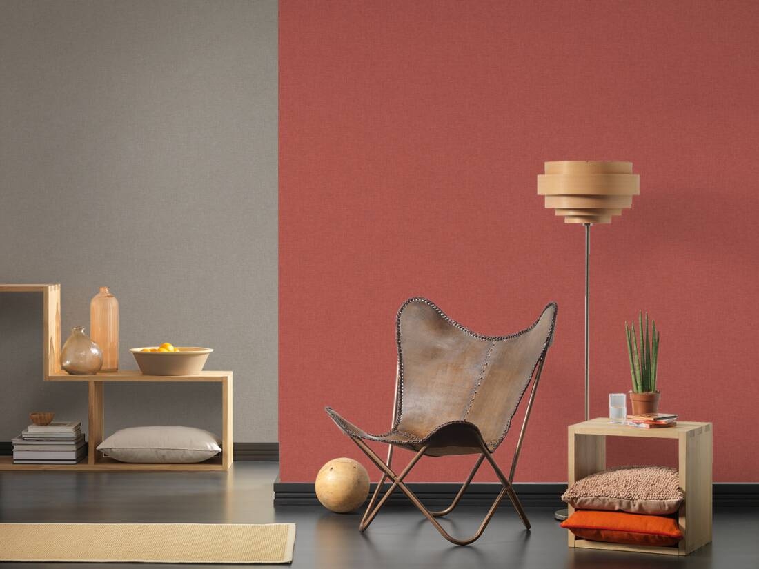 Ten wzór tapety znajdzie uznanie wśród tych, którzy cenią sobie proste, naturalne, bądź minimalistyczne wykończenia wnętrz. Struktura tapety jednolita, lekko chropowata, ziarnista w dotyku. Kolor- to odcień ceglastej czerwieni z delikatnie zaakcentowanymi ciemniejszymi nitkami, przecierany, sprawia, że tapeta doskonale imituje lnianą tkaninę. Wzór doskonale sprawdzi się jako uzupełnienie wzorzystych tapet, bądź jako ozdoba wybranego fragmentu ściany lub całego pomieszczenia, które rozjaśnimy odpowiednimi meblami i dodatkami.