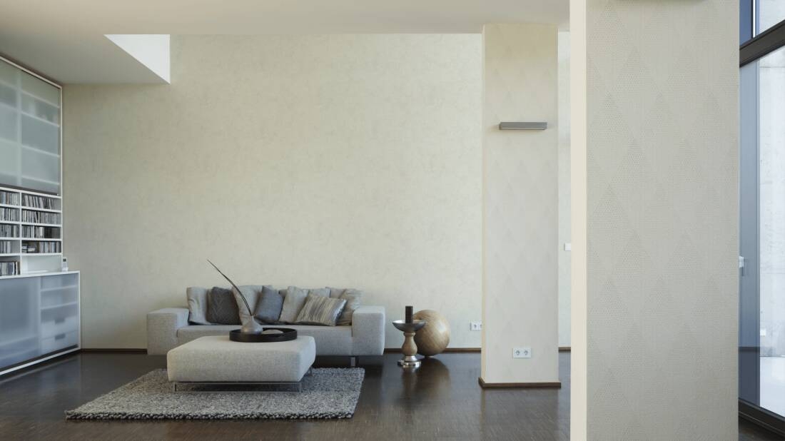 Ten wzór znajdzie uznanie wśród osób, które cenią sobie proste i naturalne pomysły w wykończeniu wnętrz. Tapeta o matowej powierzchni, jest delikatnie chropowata w dotyku o jednolitej fakturze. Kolor nie jest jednolity, delikatnie przecierany, widoczne są różne odcienie beżu i bieli, dzięki temu na powierzchni tapety tworzy się wzór przypominający lnianą tkaninę. Prosta, a zarazem ciekawa aranżacja, będzie doskonałym tłem do wzorzystych tapet, lub pasujących elementów dekoracji.