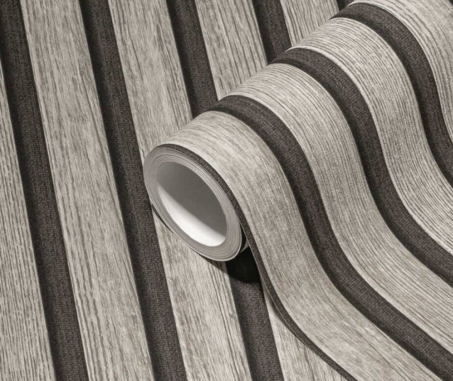 Tapeta idealnie imituje naturalną ściankę z paneli lamelowych. Ze względu na mocną i trwałą powłokę winylową, nadaje się doskonale do salonu, pokoju, przedpokoju, jadalni czy kuchni.