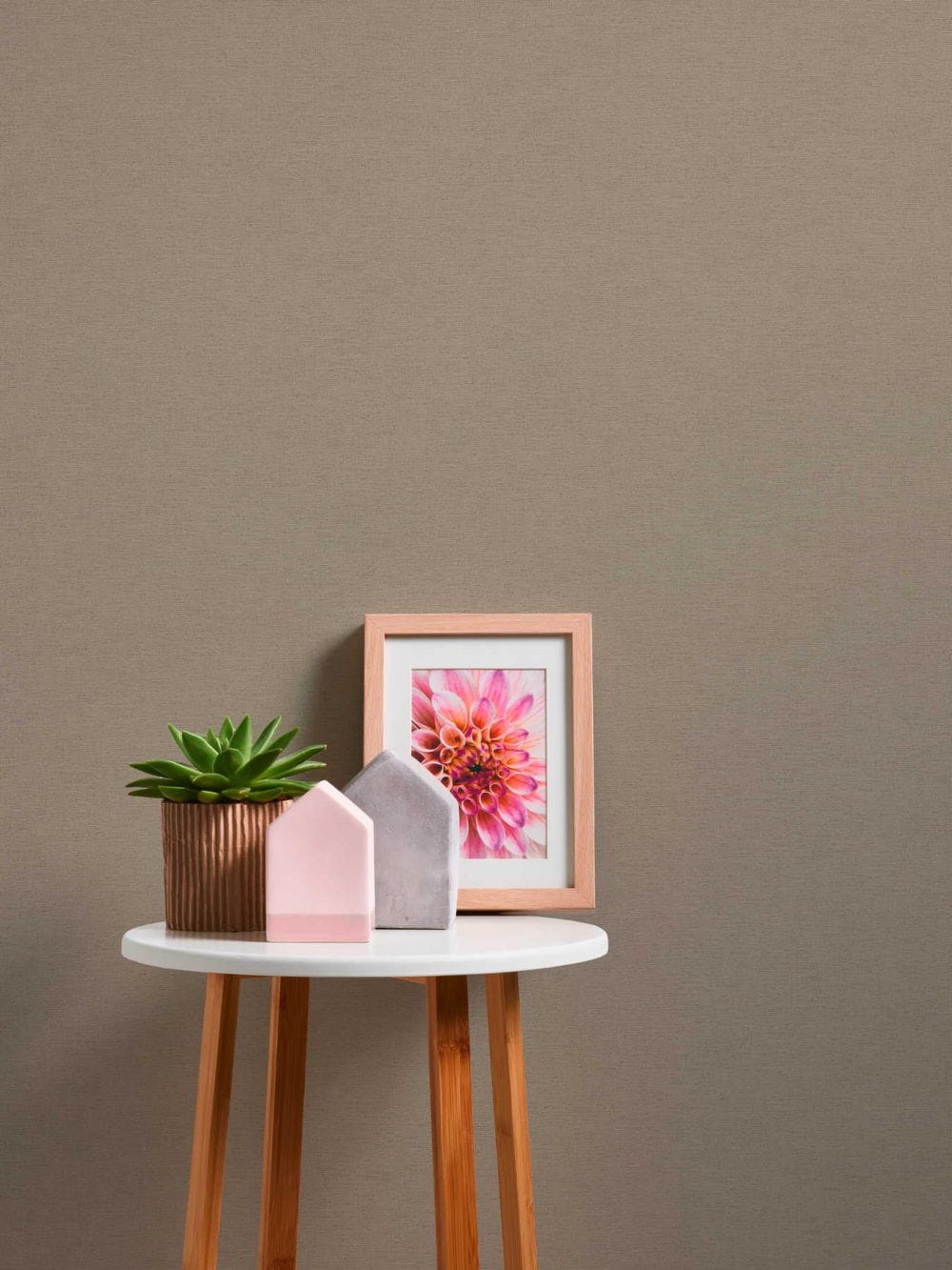 Powierzchnia tapety jednolita, lekko chropowata w dotyku, faktura przypomina tkaninę.