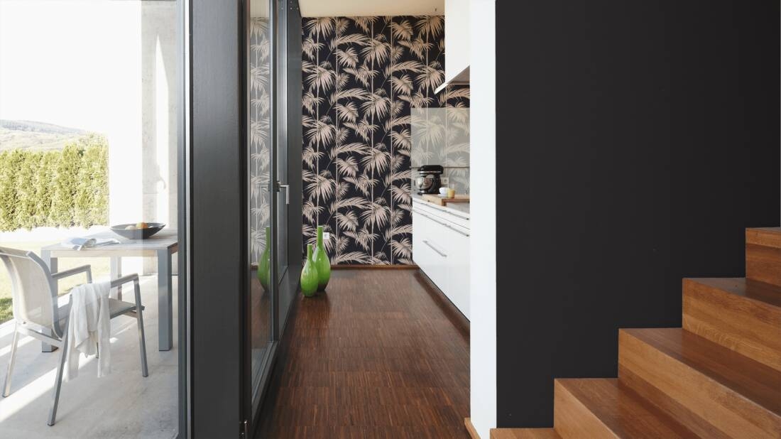 Tapeta o ciekawej kolorystyce i interesującej teksturze, znajdzie uznanie u wszystkich, którzy lubią i cenią sobie proste, uniwersalne i nowoczesne rozwiązania w aranżacji swoich wnętrz. Faktura tapety jednolita, minimalnie tłoczona, widoczne ledwo wyczuwalne w dotyku pionowe i poziome linie, które tworzą na powierzchni tapety ciekawą teksturę, która w połączeniu z minimalnie połyskującym odcieniem głębokiej czerni tworzy nowoczesną i elegancką aranżację ścienną.