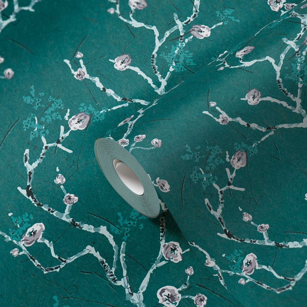 - Rodzaj wzoru: tapeta wzór kwiaty, kwiatki, drobne kwiatuszki na gałązkach z widocznymi pociągnięciami pędzlem