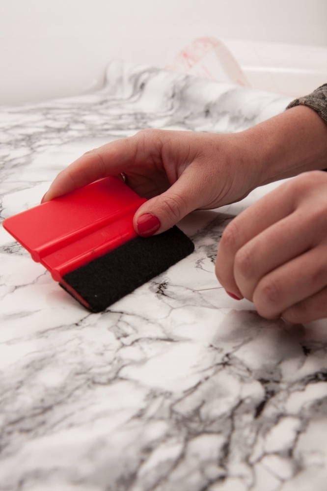 Rakla z filcem pomocna przy aplikacji oklein samoprzylepnych, naklejek, folii