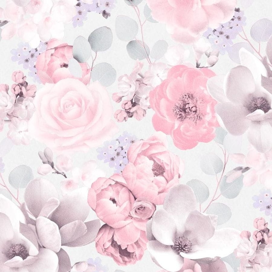 Tapeta ścienna 511220 Sintra kwiaty róże magnolia 3D różowo - szara