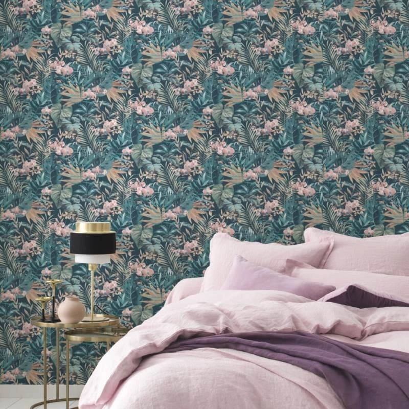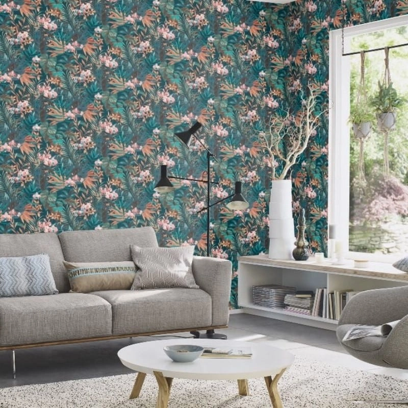 Tapeta ma zastosowanie uniwersalne, nadaje się idealnie jako uzupełnienie dla jednokolorowych tapet. Tapeta z kolekcji Rasch "Salsa" to ciekawa propozycja dla zwolenników, roślinnych i kwiatowych motywów we wnętrzu. Powierzchnię tapety wypełniają różnego rodzaju liście i kwiaty gęsto ułożone na ciemnym, turkusowo-zielonym tle. Rośliny są realistycznie przedstawione i emanują naturalną lekkością. Kolory kwiatów i liści w różnych odcieniach niebieskiego, zielonego, czerwonego i brązowego doskonale współgrają z ciemnym tłem. Niebanalny motyw i ciekawa kolorystyka bez trudu stworzy tło dla różnego rodzaju elementów wyposażenia i dekoracji, kreując ciekawe i niepowtarzalne wnętrze. Tapeta będzie dobrym uzupełnieniem dla jednobarwnych tapet z kolekcji, bądź może posłużyć jako wykończenie całego pomieszczenia.