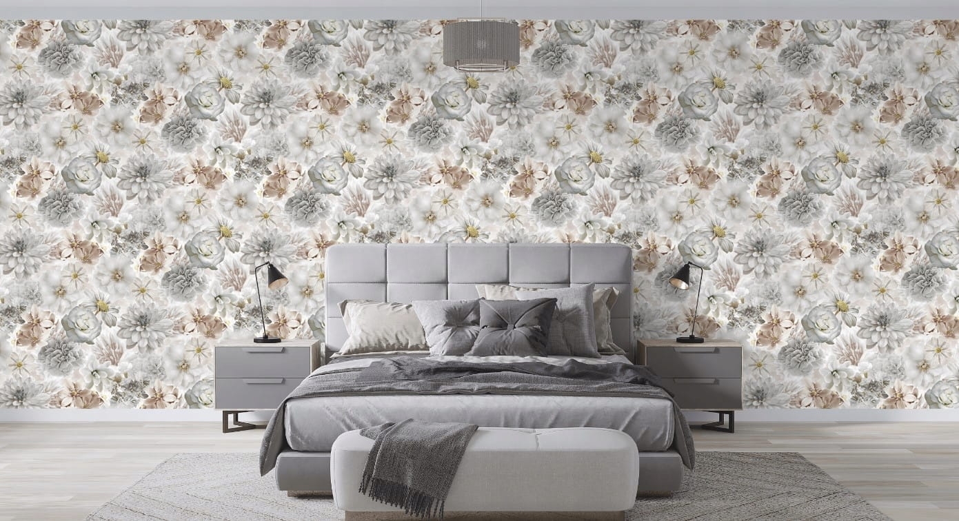 Sintra 372005 Tapeta ścienna kwiaty kwiatki 3D szare