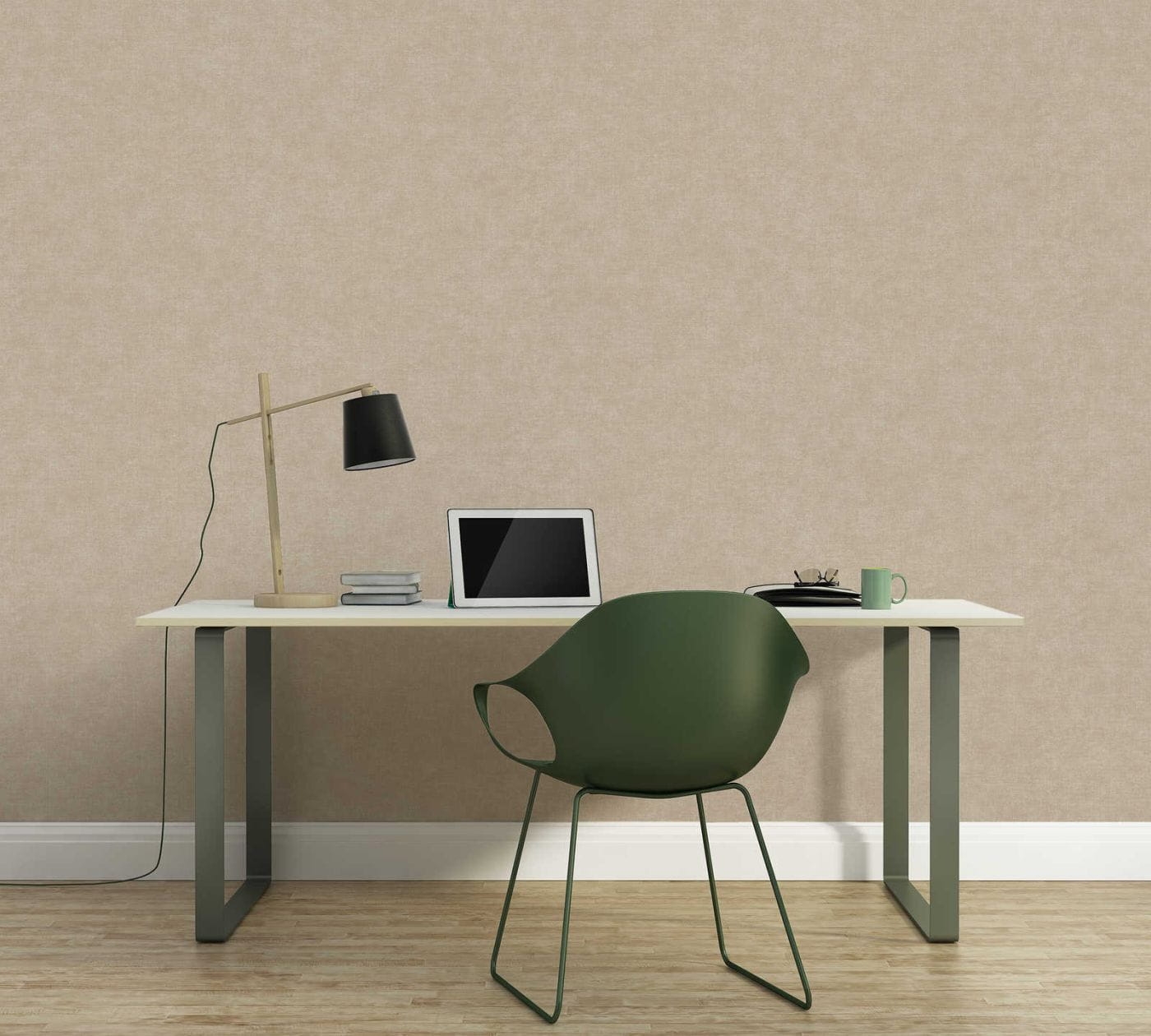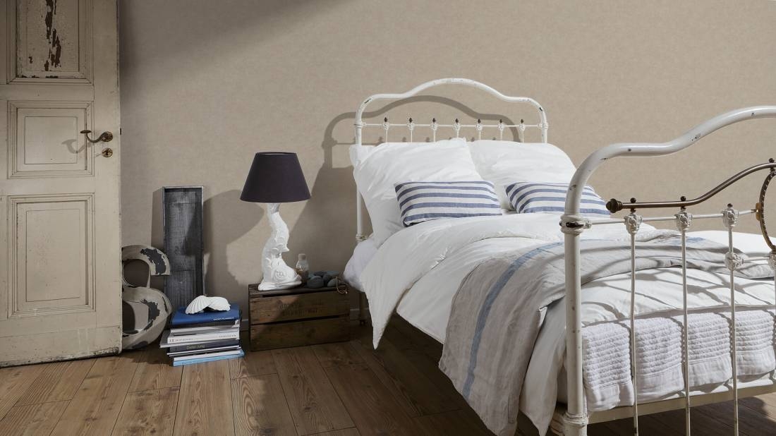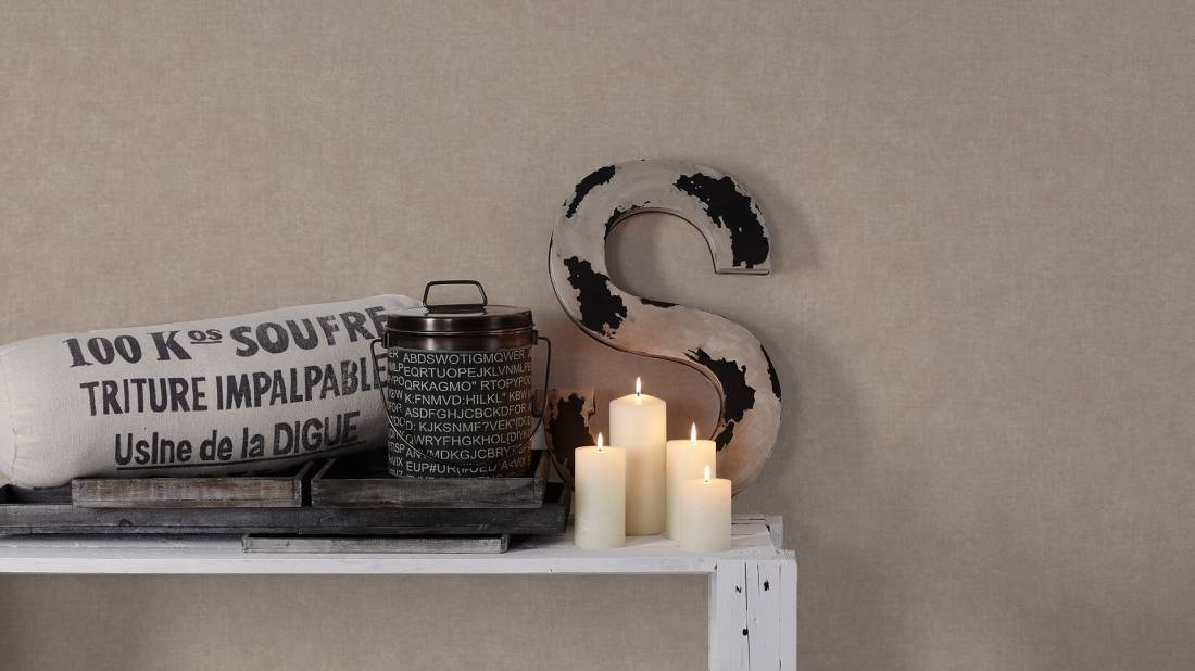 Struktura tapety: delikatnie chropowata w dotyku. Faktura przypomina lnianą tkaninę. Kolor niejednolity, lekko przecierany.