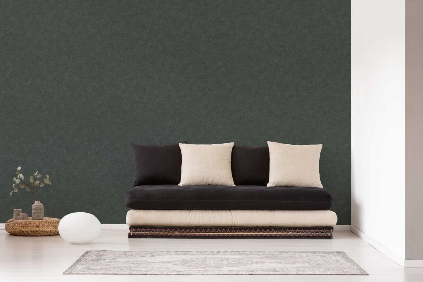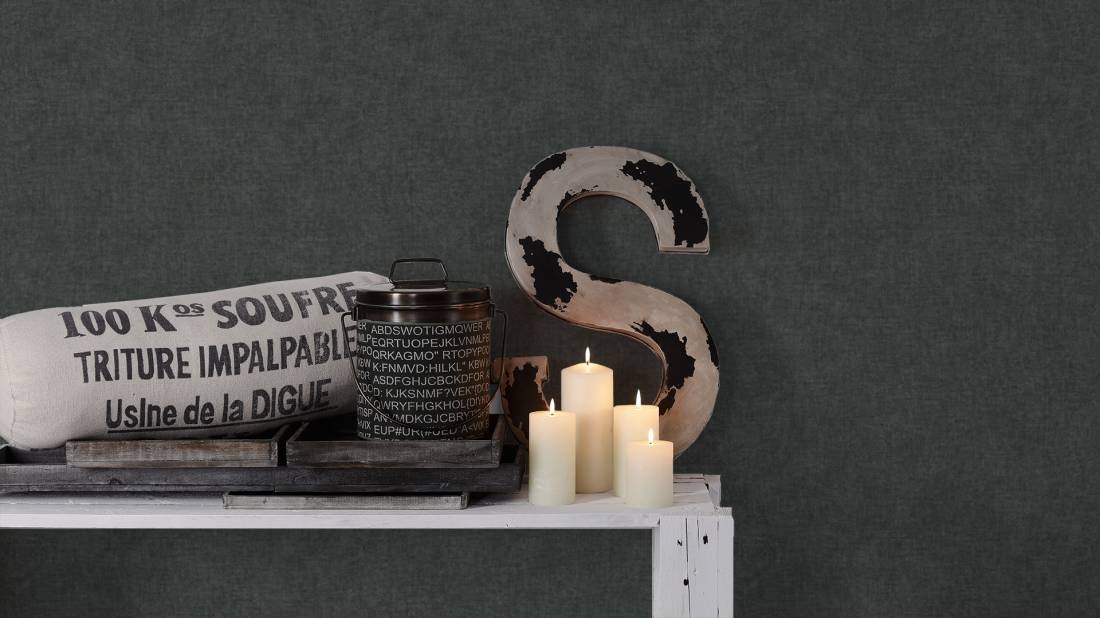 Struktura tapety: delikatnie chropowata w dotyku. Faktura przypomina lnianą tkaninę. Kolor niejednolity, lekko przecierany.