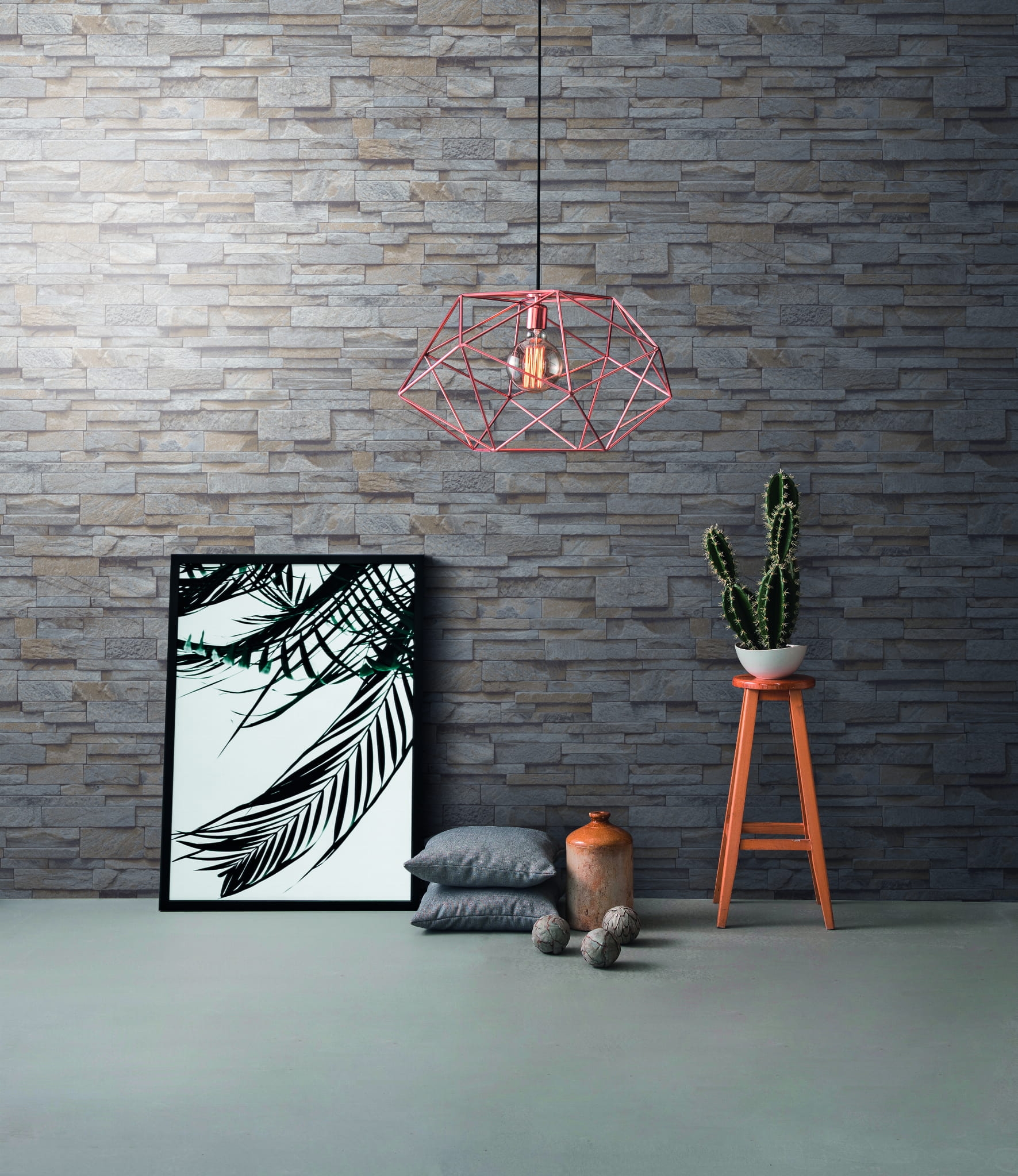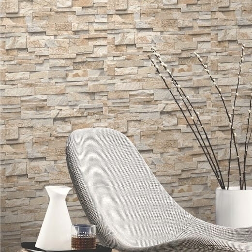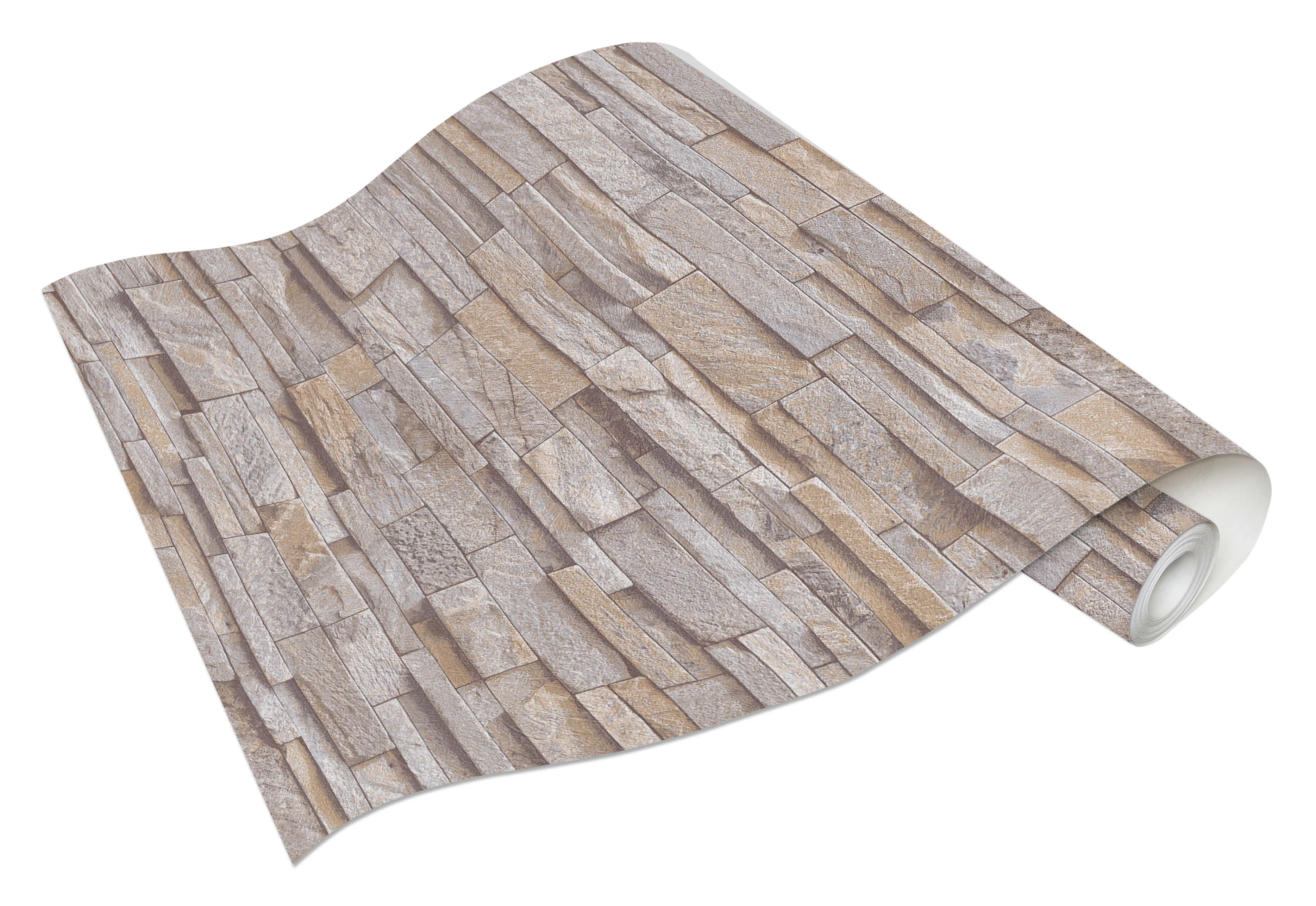 Struktura tapety: matowa, lekko tłoczona, chropowata w dotyku. Wzór na tapecie przedstawia kamienny mur. Kamienie różnej wielkości, kolor niejednolity, przecierany- doskonale oddaje efekt trójwymiaru.