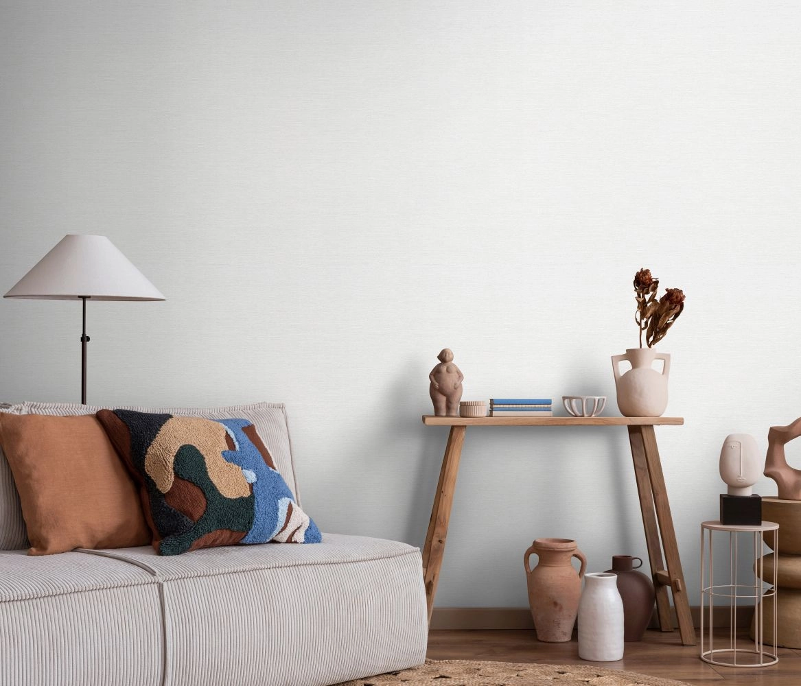 Struktura: Struktura delikatnie wyczuwalna w dotyku, tłoczona we wzór worka. Tapeta posiada matowe wykończenie.