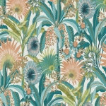 Tapeta ścienna 10390-18 Erismann liście kwiaty Biało Turkusowe łososiowe