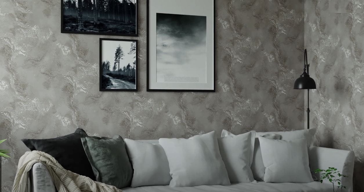 - Rodzaj wzoru: tapeta z motywem przecieranego, betonowego tynku