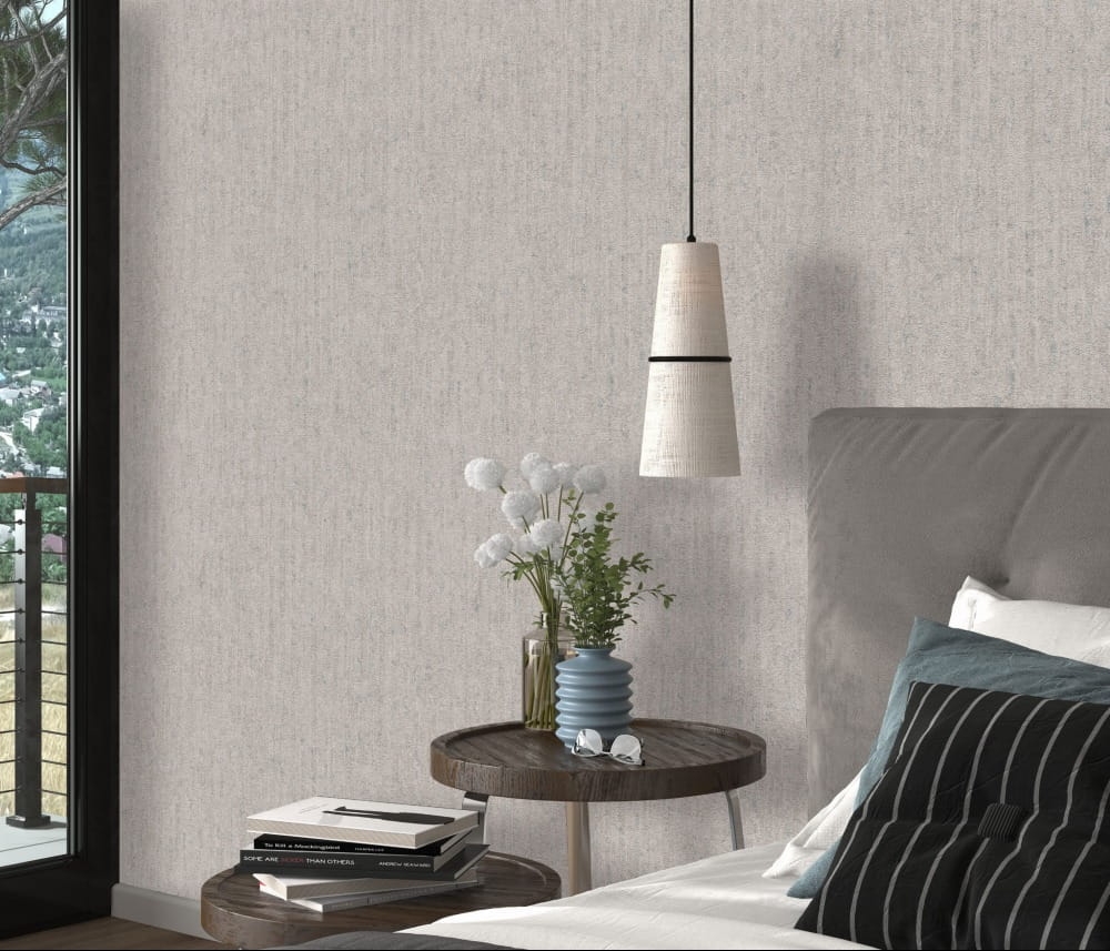 Tapeta ze strukturą betonu, tynku. Doskonale sprawdzi się jako wykończenie całego pomieszczenia.
