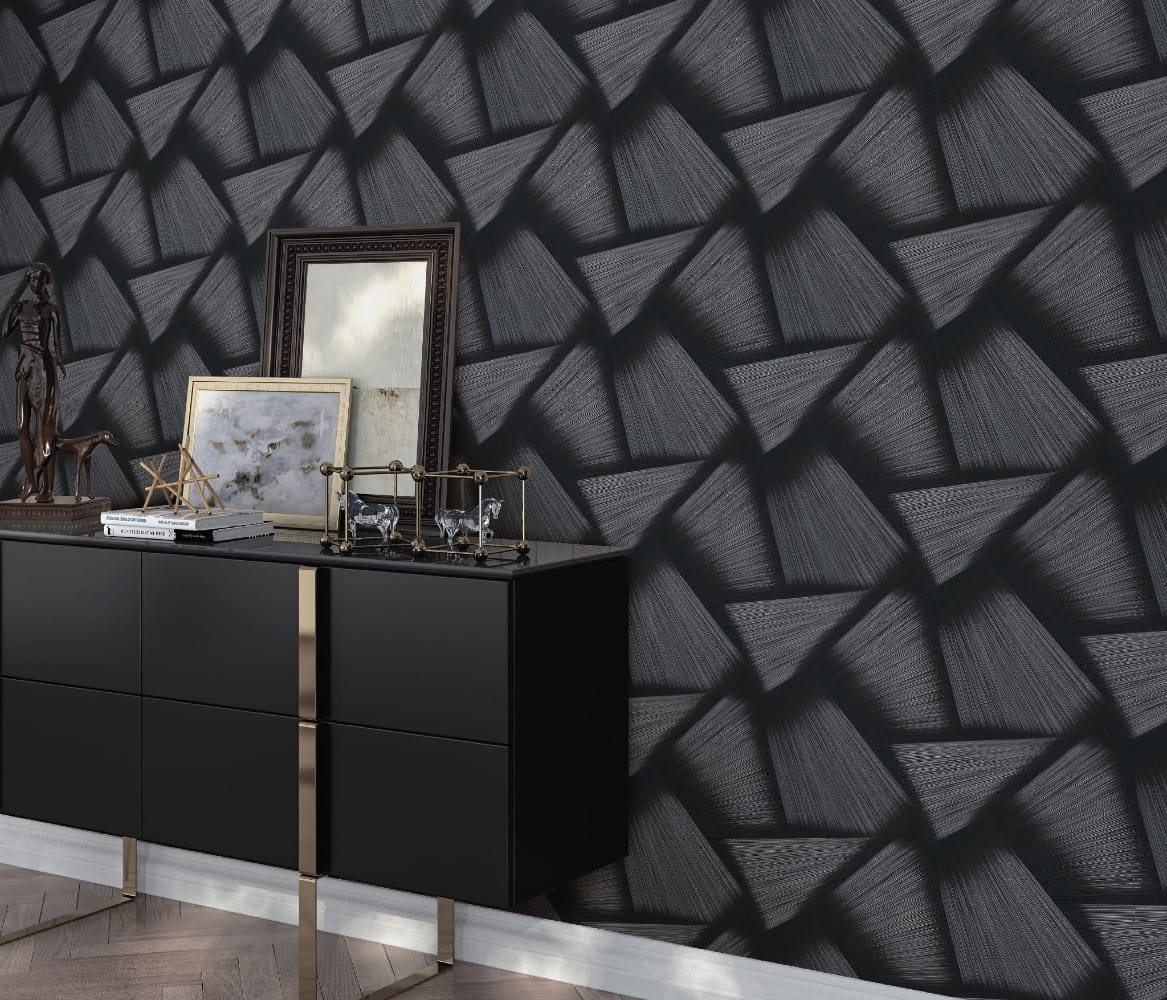 Tapeta ścienna na flizelinie 10401-15 czarno srebrny wzór geometryczny