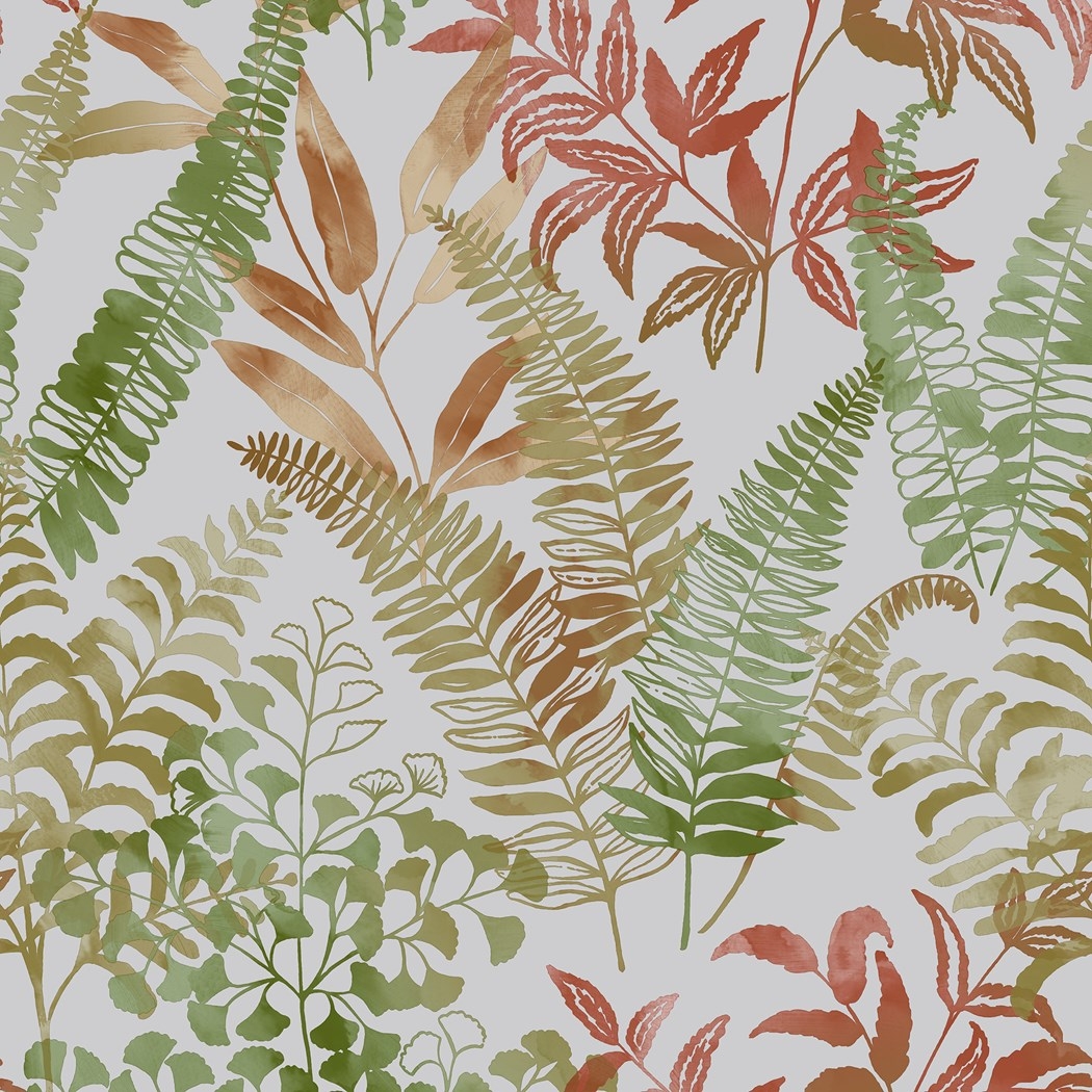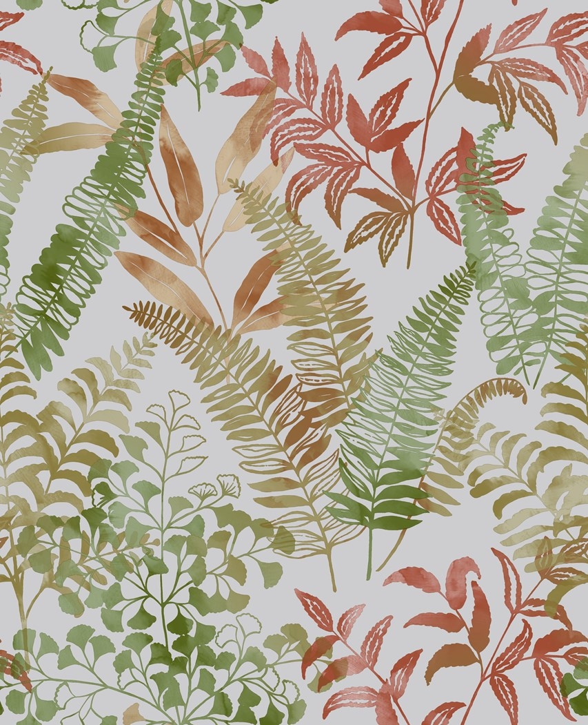 Struktura: Tapeta cechuje się delikatnie teksturowaną powierzchnią, z subtelnym uskokiem i lekkim reliefem, który daje wrażenie struktury, lecz nie jest bardzo głęboki. Motyw liści „nakłada się” na to tło — wzór jest wyrazisty, ale sama faktura nie jest agresywna ani grubo rzeźbiona. Struktura jest delikatnie wyczuwalna w dotyku.