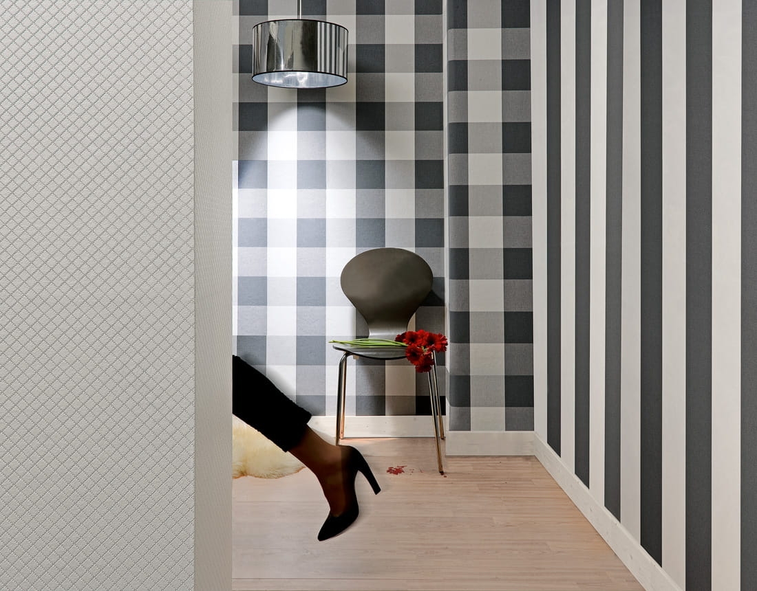 Klasyczna krata czarno-biała jest niewątpliwie mocnym akcentem na ścianie, przez co nadaje się na powierzchnie, które chcemy wyeksponować.