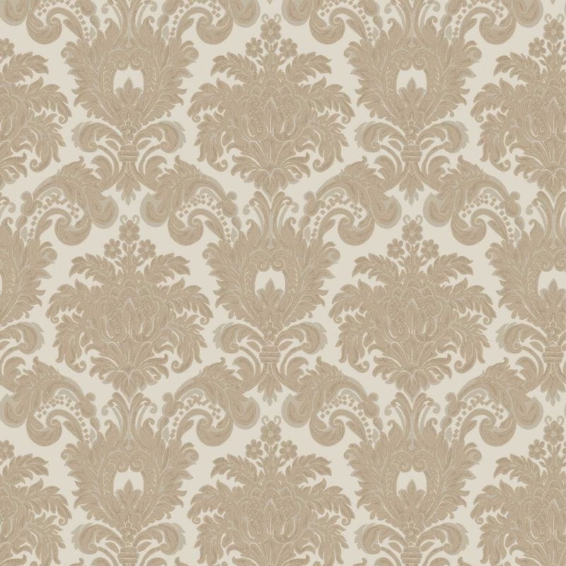 Powierzchnia tapet ma wyraźnie reliefową fakturę, przywodzącą na myśl delikatnie tkane płótno, jedwab lub szlachetny tynk dekoracyjny. Subtelne tłoczenia i miękkie przejścia światła tworzą efekt głębi, dzięki czemu ściana nabiera przyjemnej, trójwymiarowej miękkości. Wykończenie jest matowe z lekkim, satynowym połyskiem, który podkreśla elegancki charakter wzorów i wprowadza do wnętrza wrażenie ciepła oraz harmonii. Dodatkowo tapeta posiada drobny, delikatny brokat, który pozostaje niemal niewidoczny w naturalnym świetle, a ujawnia subtelny blask dopiero po podświetleniu tapety sztucznym światłem.
