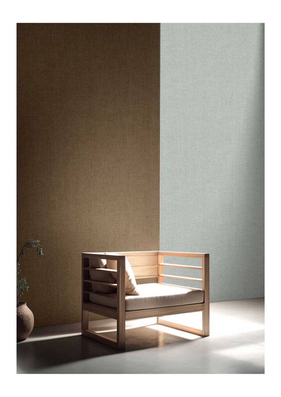 Struktura: Tapeta o strukturze płóciennej tkaniny, utrzymana w delikatnym, jasnoszarym odcieniu z subtelną nutą błękitu. Na pierwszy rzut oka matowa, ujawnia swój wyjątkowy charakter w świetle – jej powierzchnia delikatnie mieni się perłową poświatą szampańskiego pyłku. To uniwersalna dekoracja o przytulnym, a zarazem eleganckim charakterze, która doskonale komponuje się z różnymi stylami aranżacji wnętrz i sprawdzi się w każdym pomieszczeniu.