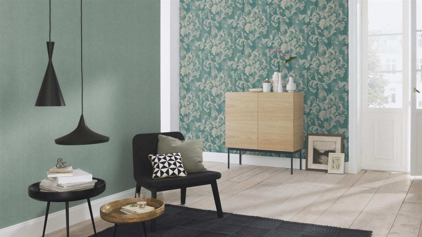 Tapeta ścienna na flizelinie 449846 Rasch Country Charme zielone tło struktura worka