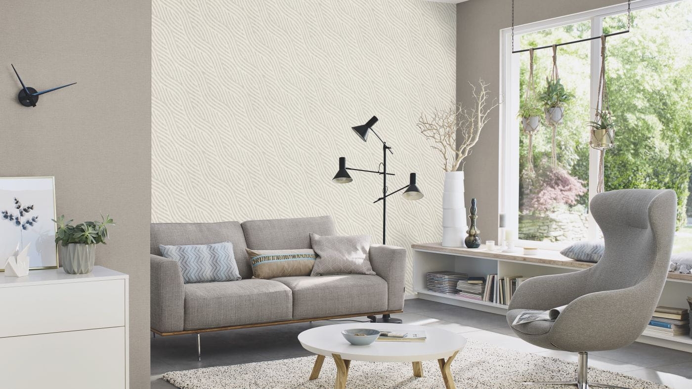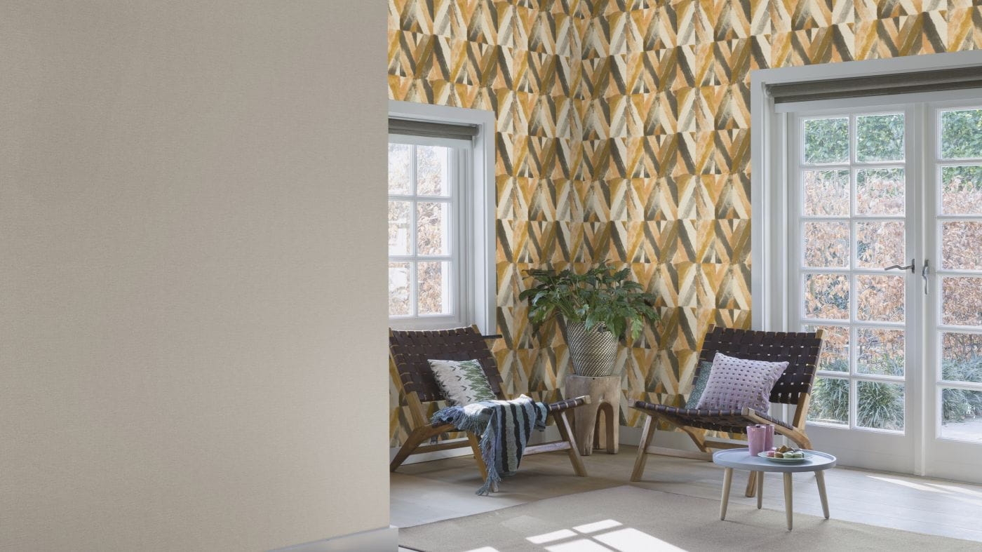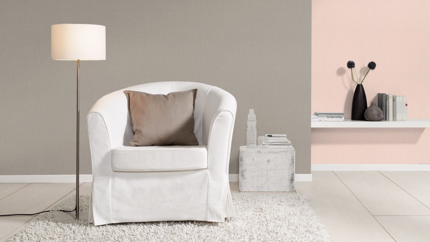 Struktura: Powierzchnia delikatnie chropowata w dotyku, imitująca delikatny worek. Tapeta posiada matowe wykończenie.