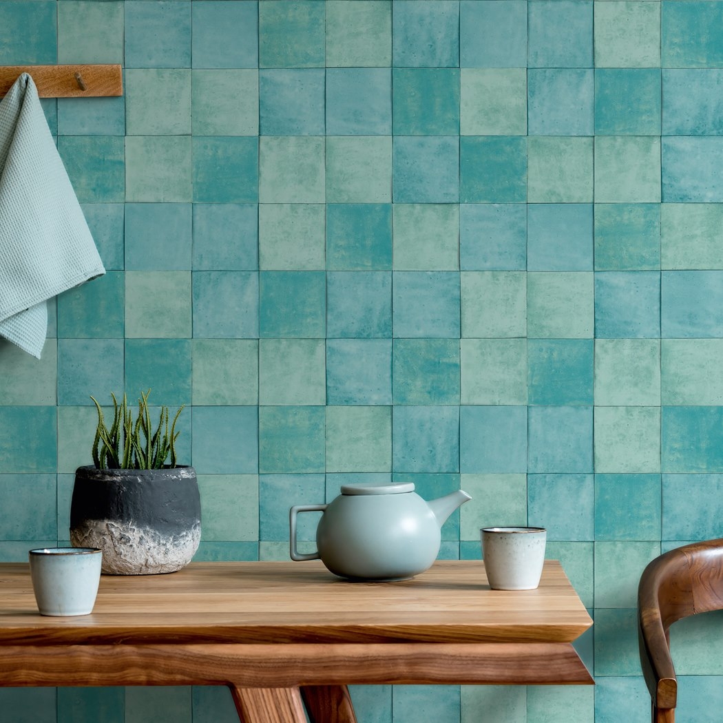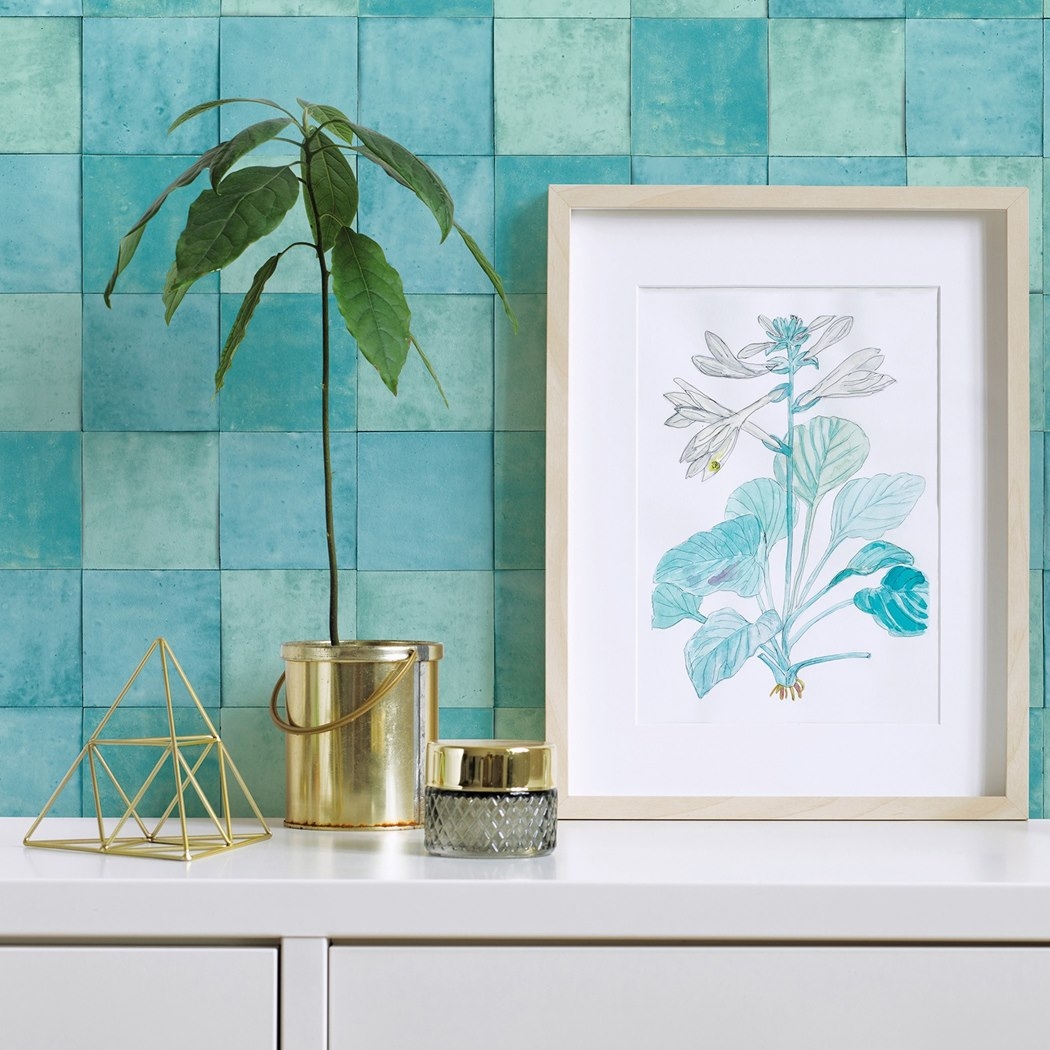 Novamur Tapeta ścienna na flizelinie Naomi 45720 turkusowe kafelki